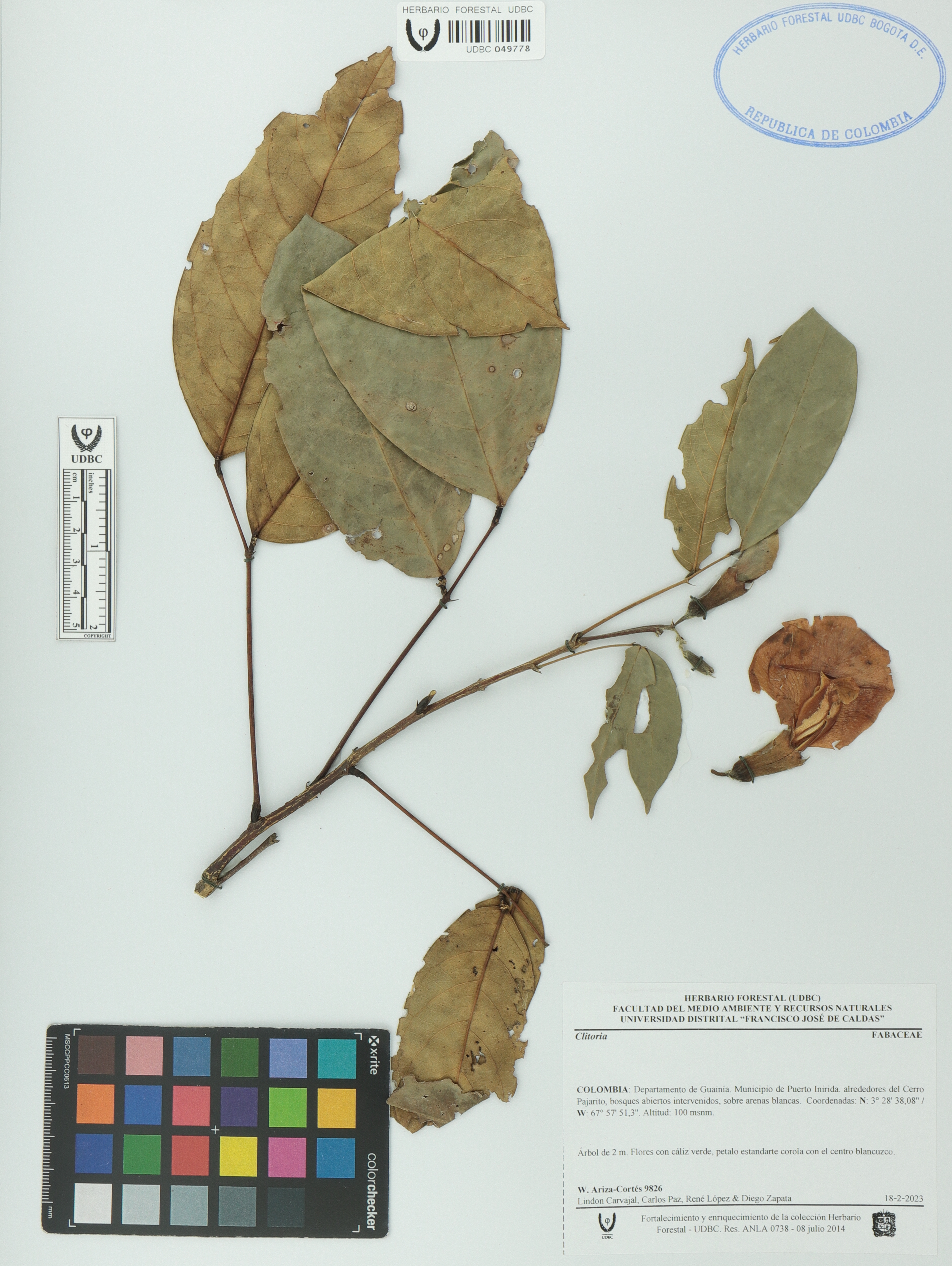 Fotografía del ejemplar Ariza-Cortés, W. 9826, determinado como Clitoria sp.