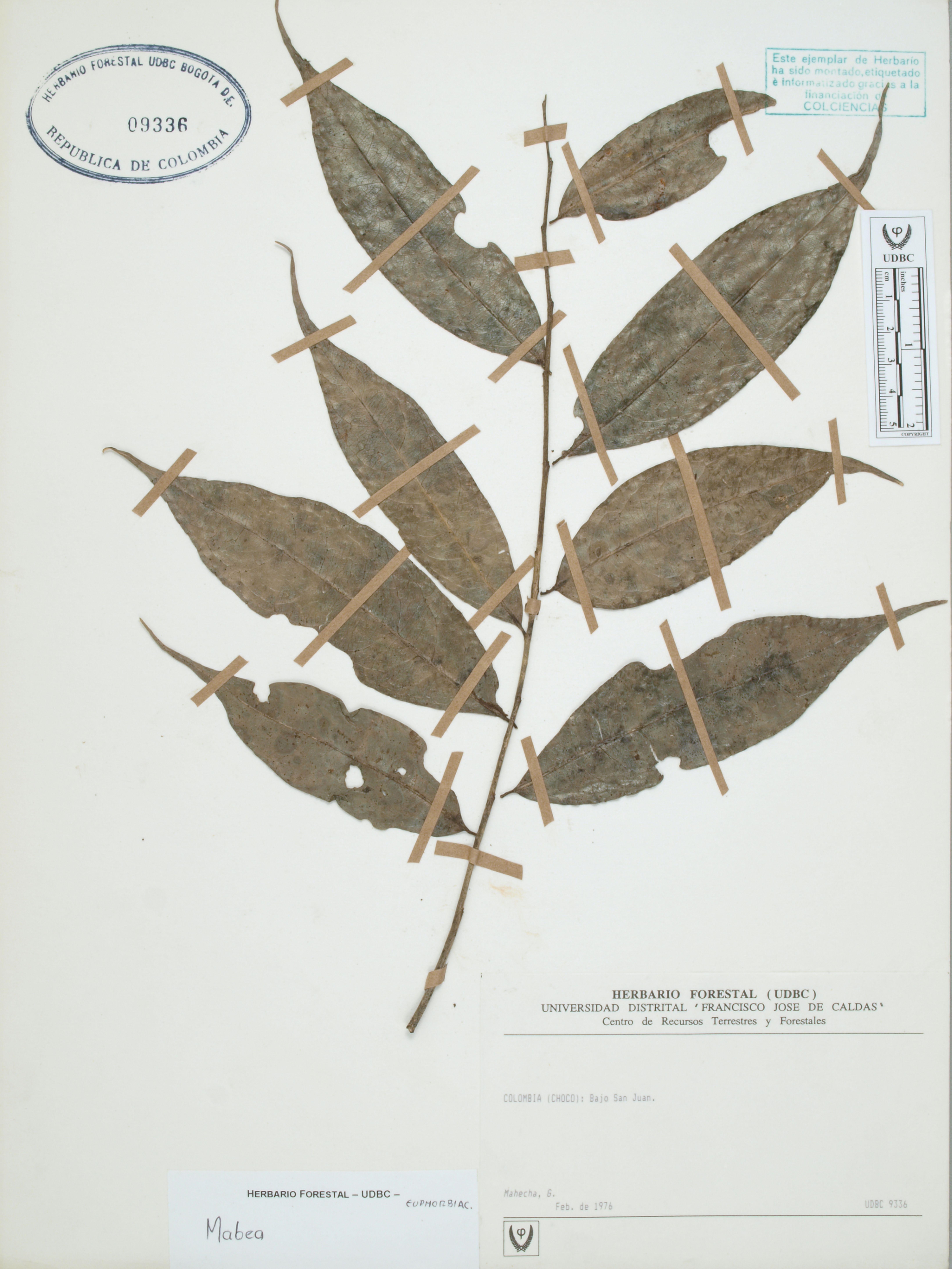 Fotografía del ejemplar Mahecha, G., determinado como Mabea sp.
