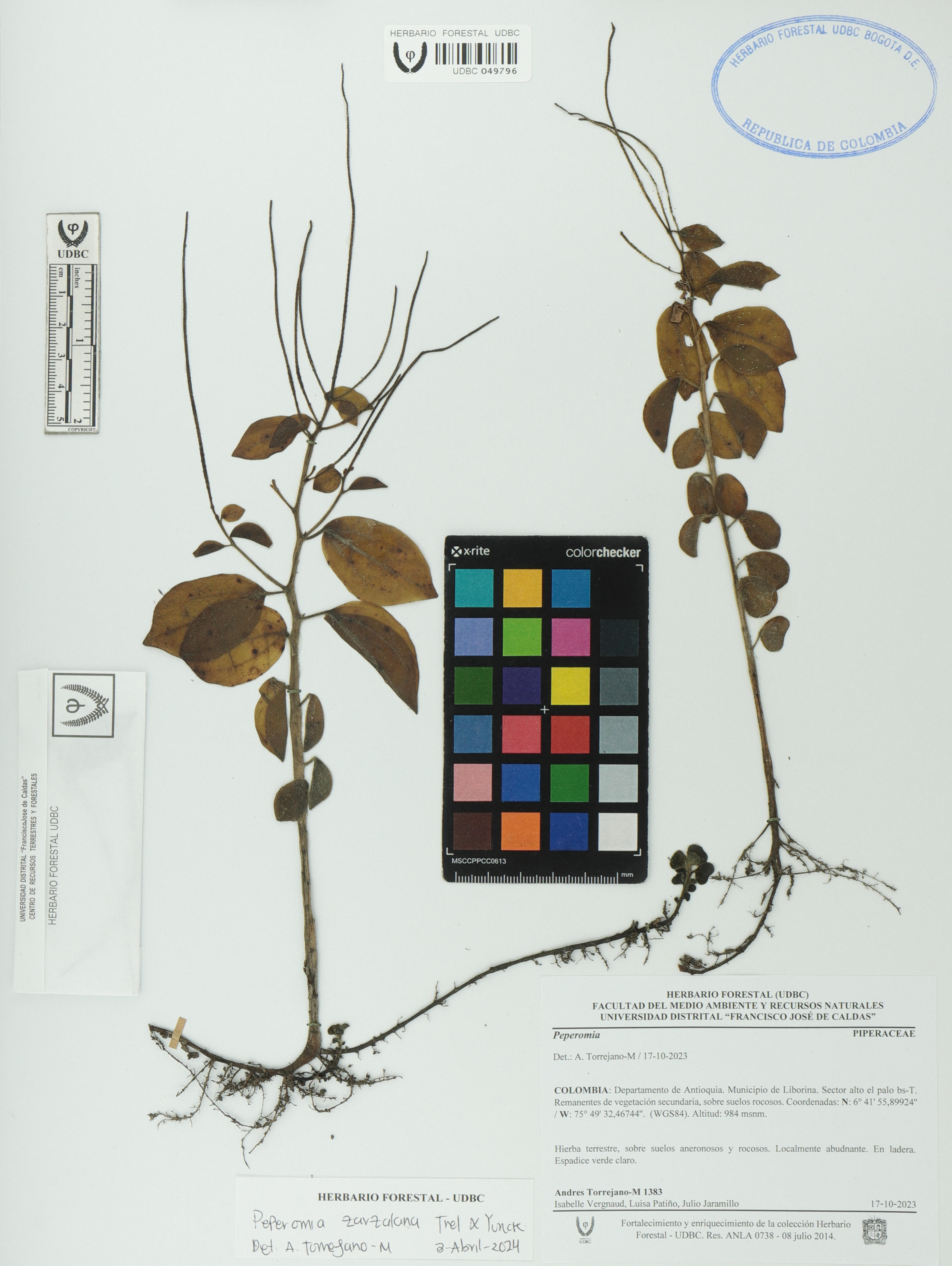 | dc.description | Fotografía del ejemplar Torrejano-M., A. 1383, determinado como Peperomia zarzalana en el año 2024 | |