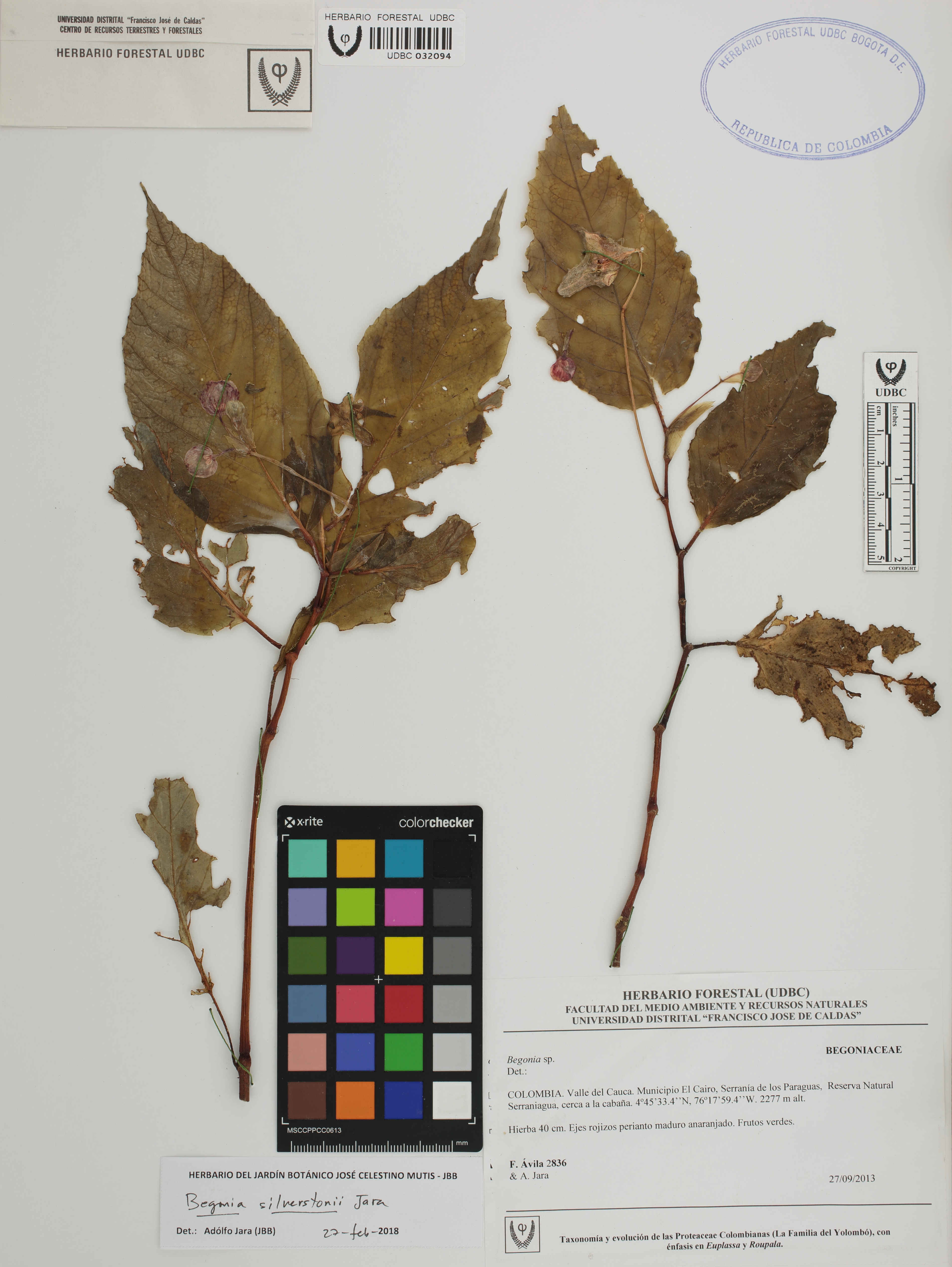 Fotografía del ejemplar Ávila, F. 2836, determinado como Begonia silverstonei en el año 2018