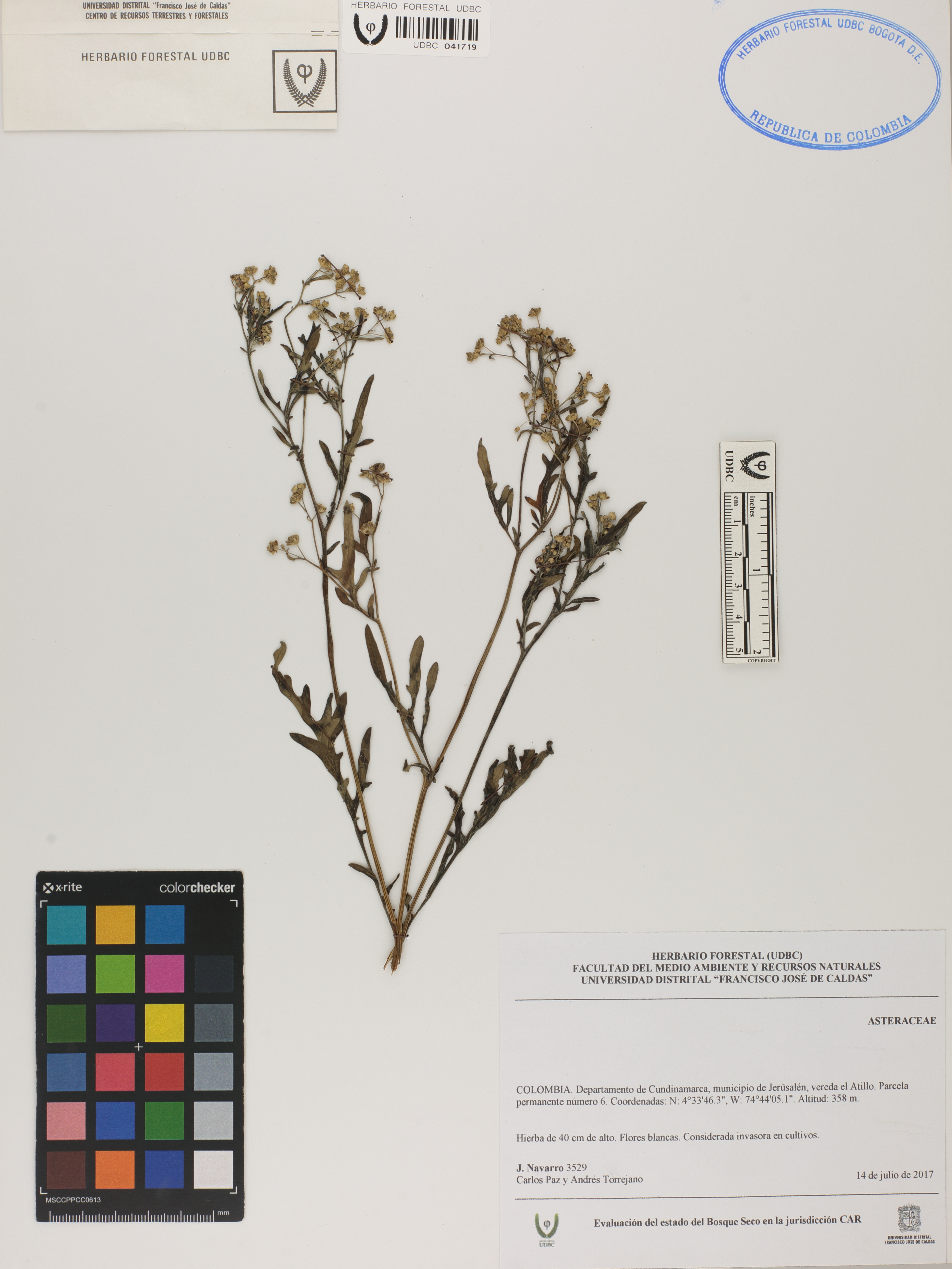 Fotografía del ejemplar Navarro, J. 3529, determinado como Asteraceae