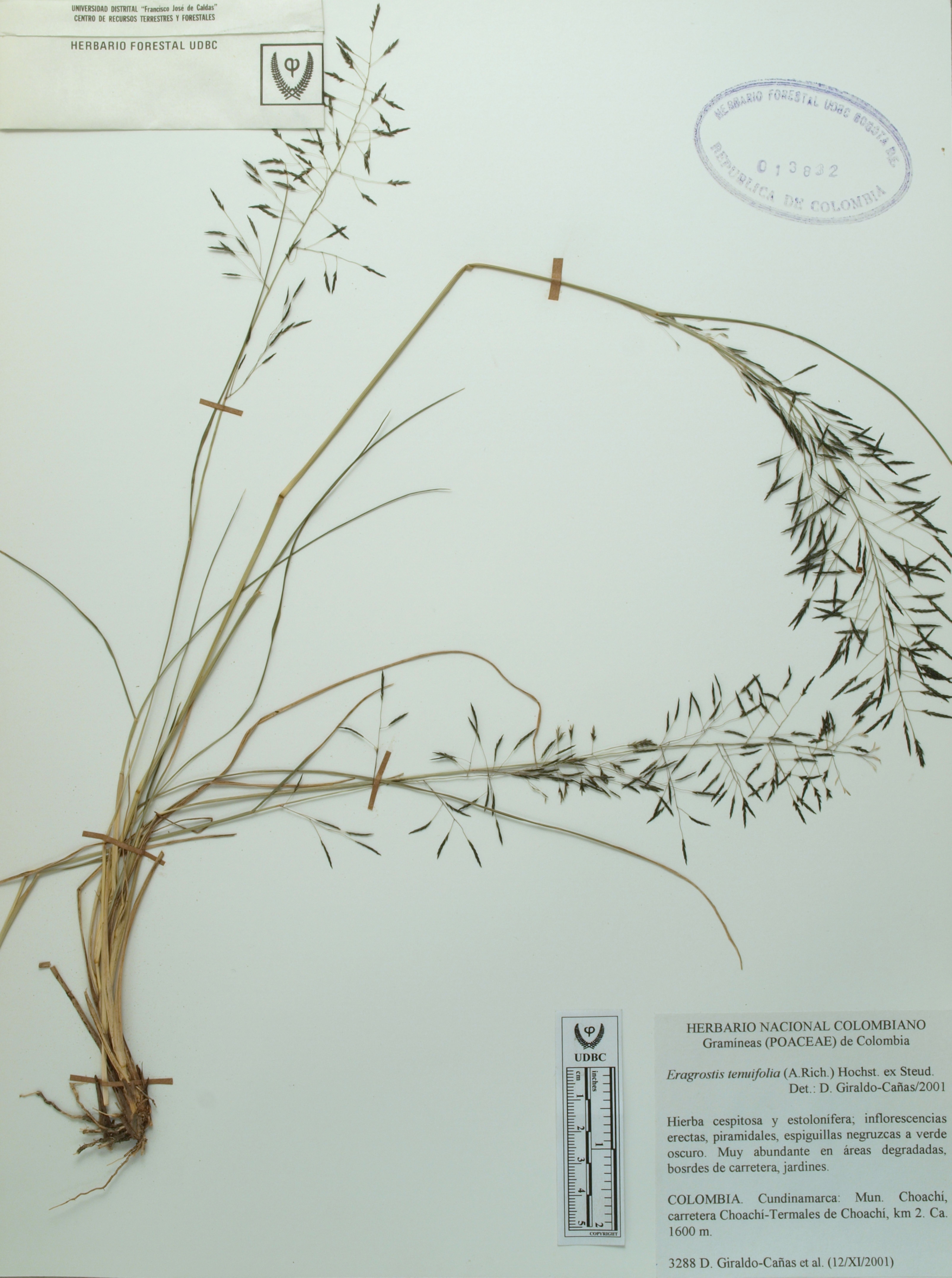 | dc.description | Fotografía del ejemplar Giraldo-Cañas, D. 3288, determinado como Eragrostis tenuifolia en el año 2001 | |