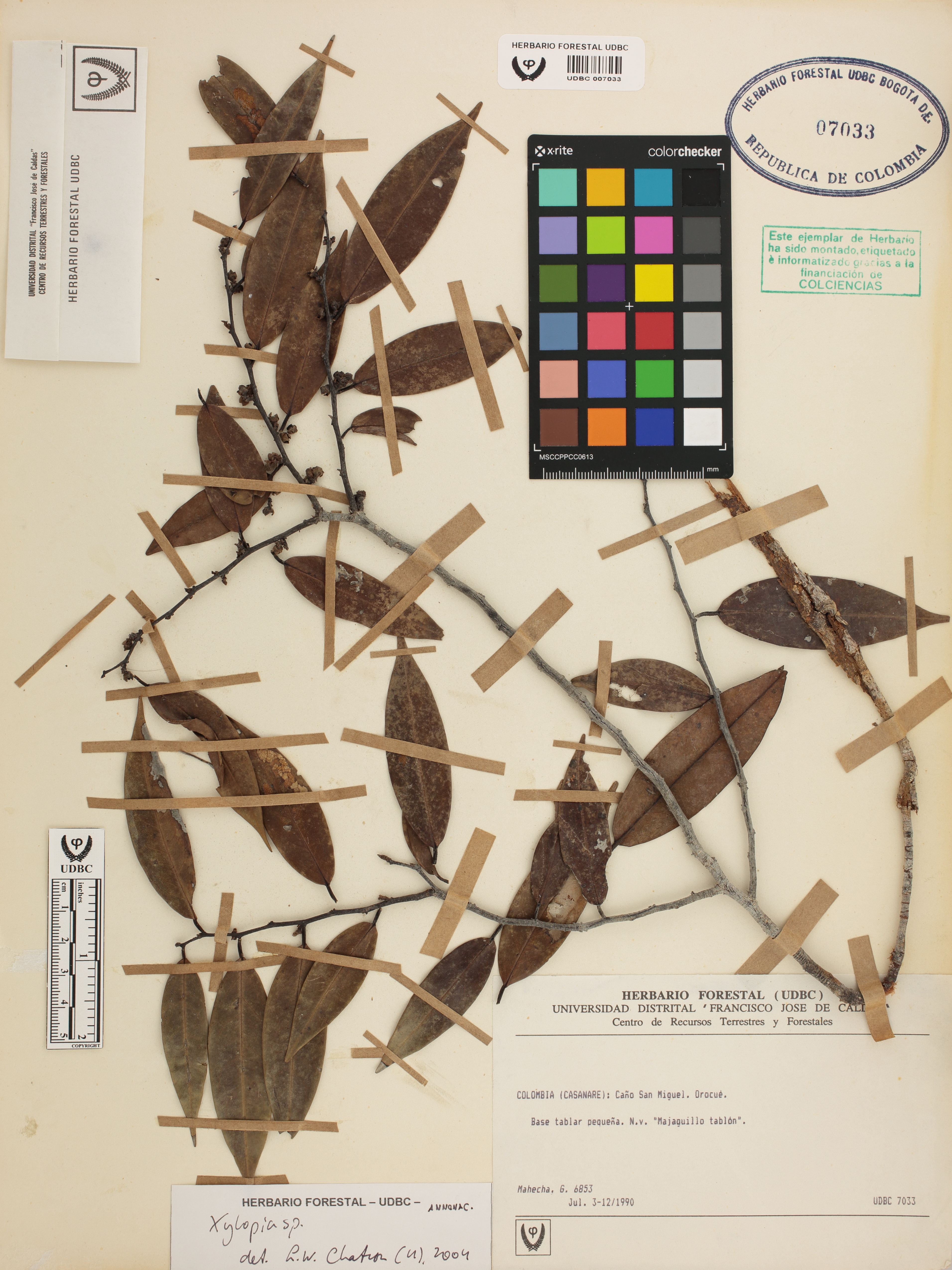 Fotografía del ejemplar Mahecha, G. 6853, determinado como Xylopia amazonica en el año 2022