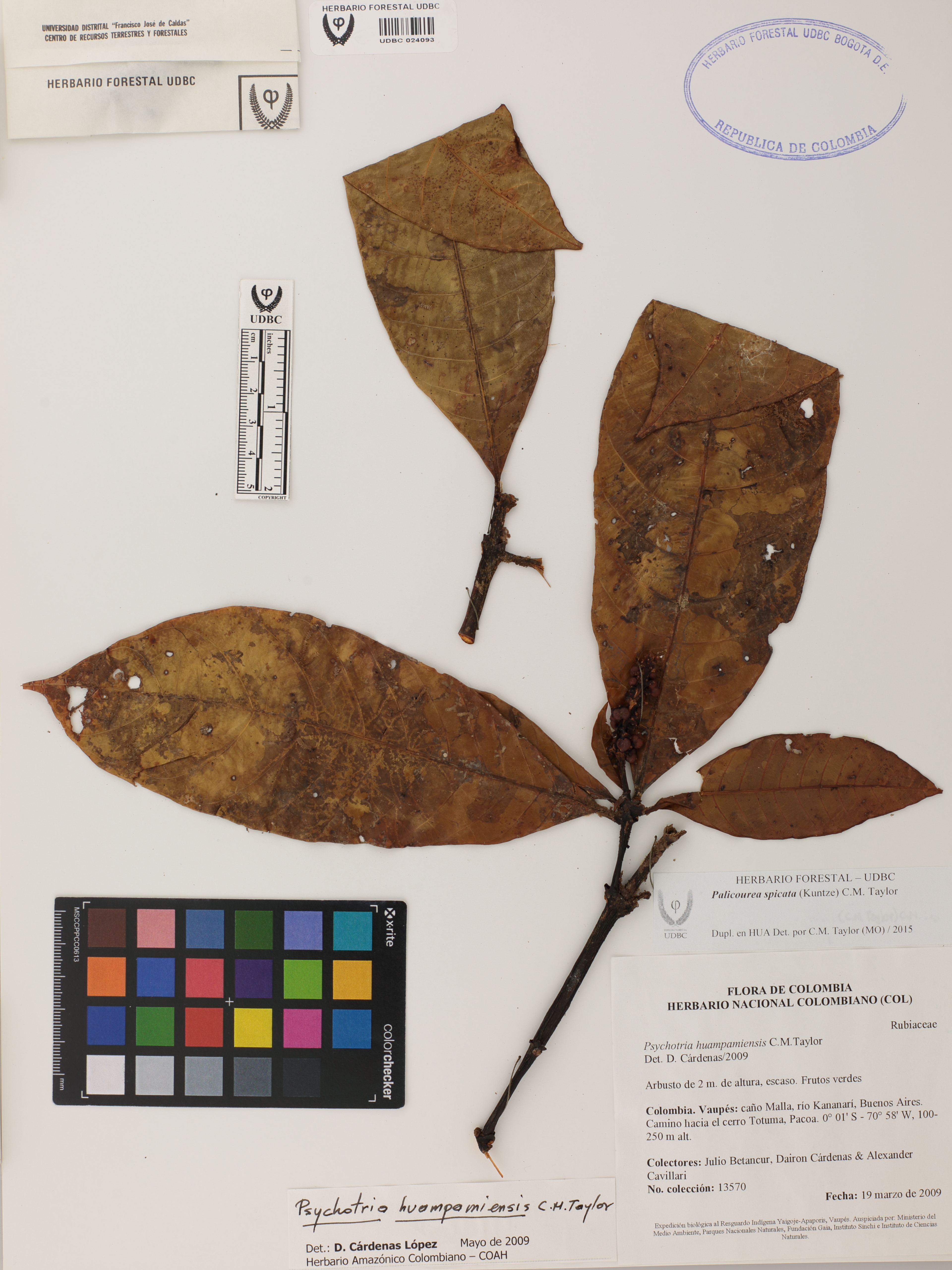 Fotografía del ejemplar Betancur, J. 13570, determinado como Palicourea spicata en el año 2015