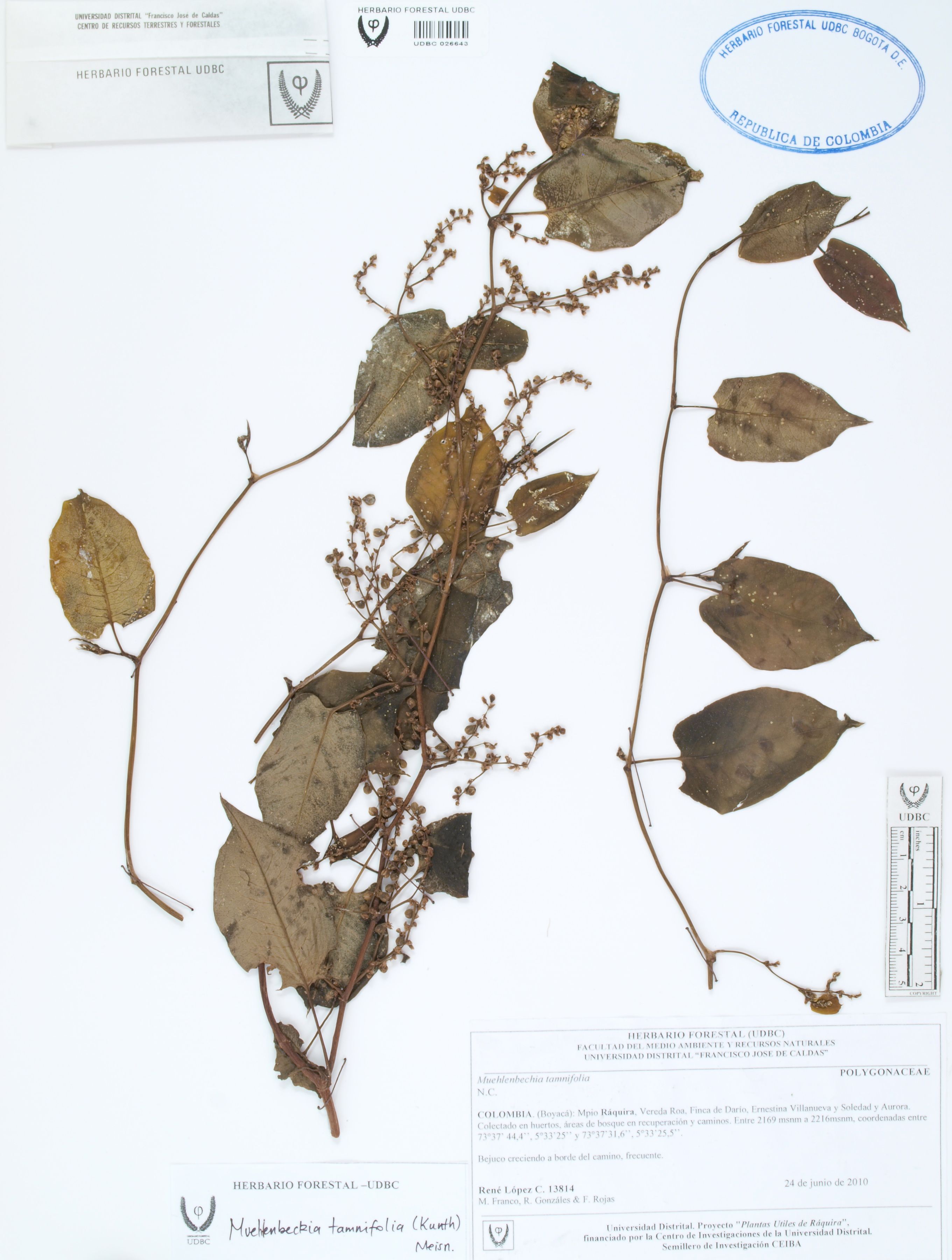 Fotografía del ejemplar López, R. 13814, determinado como Muehlenbeckia tamnifolia