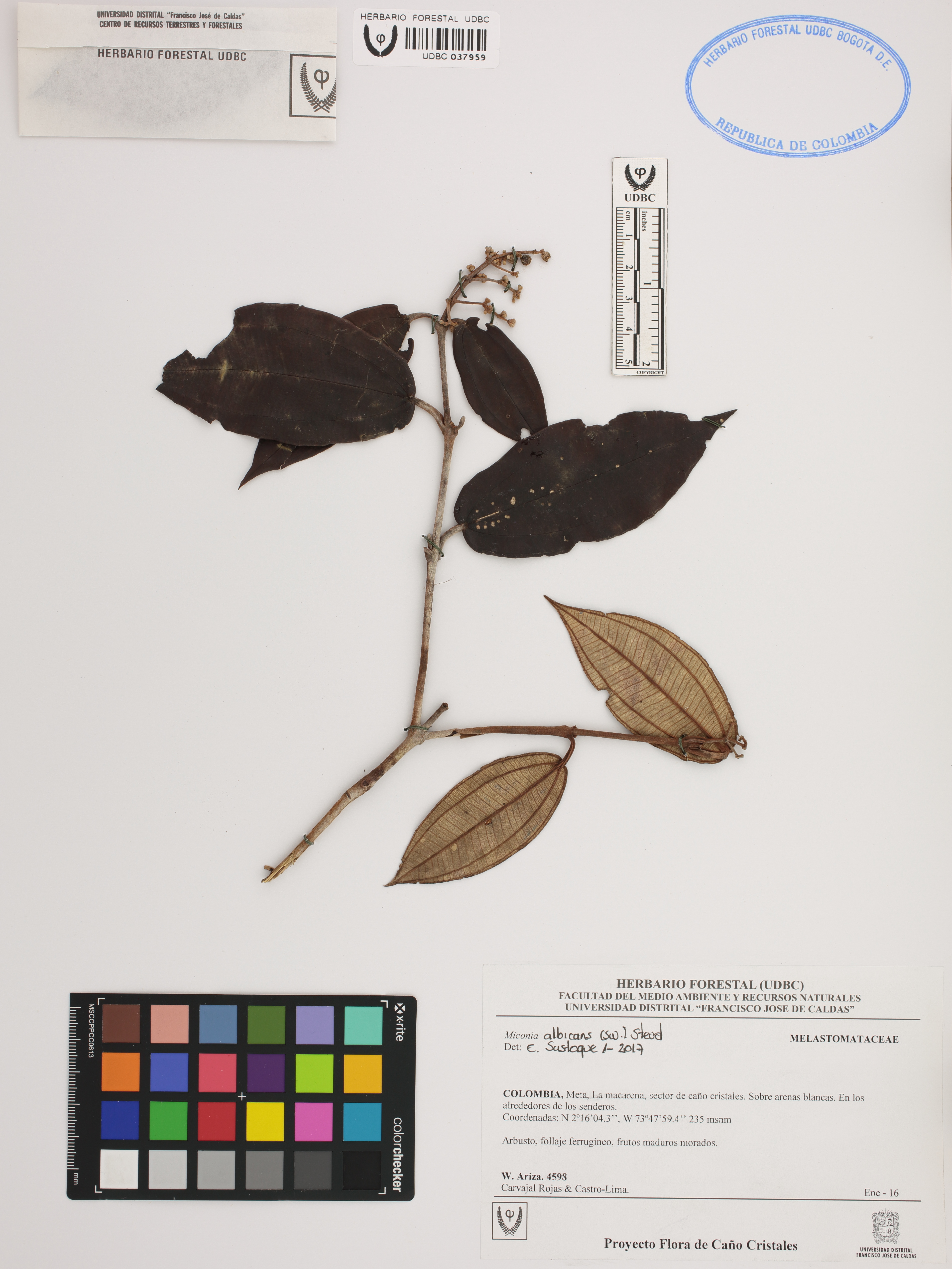 | dc.description | Fotografía del ejemplar Ariza, W. 4598, determinado como Miconia albicans en el año 2017 | |