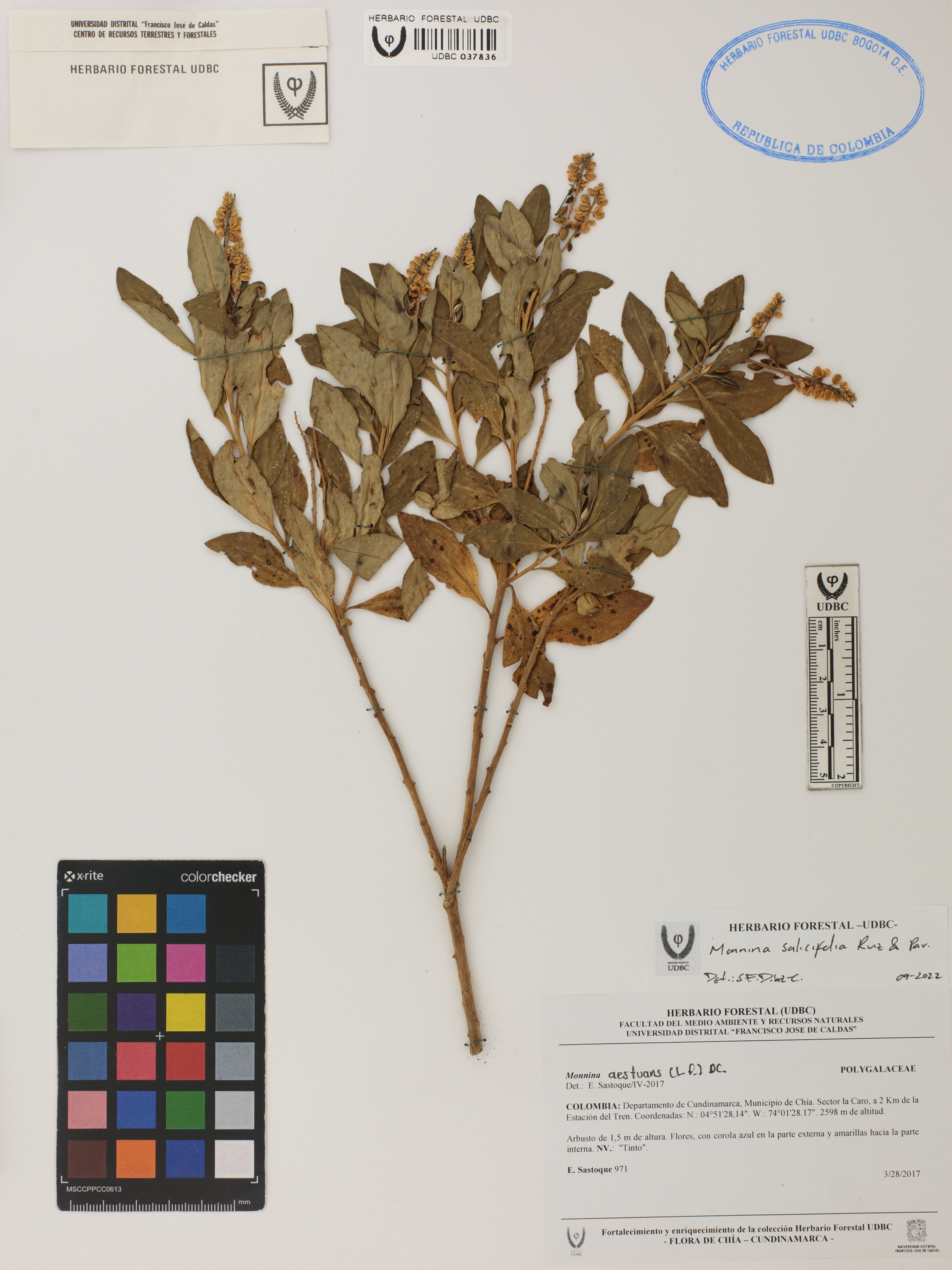Fotografía del ejemplar Sastoque, E. 971, determinado como Monnina salicifolia en el año 2022