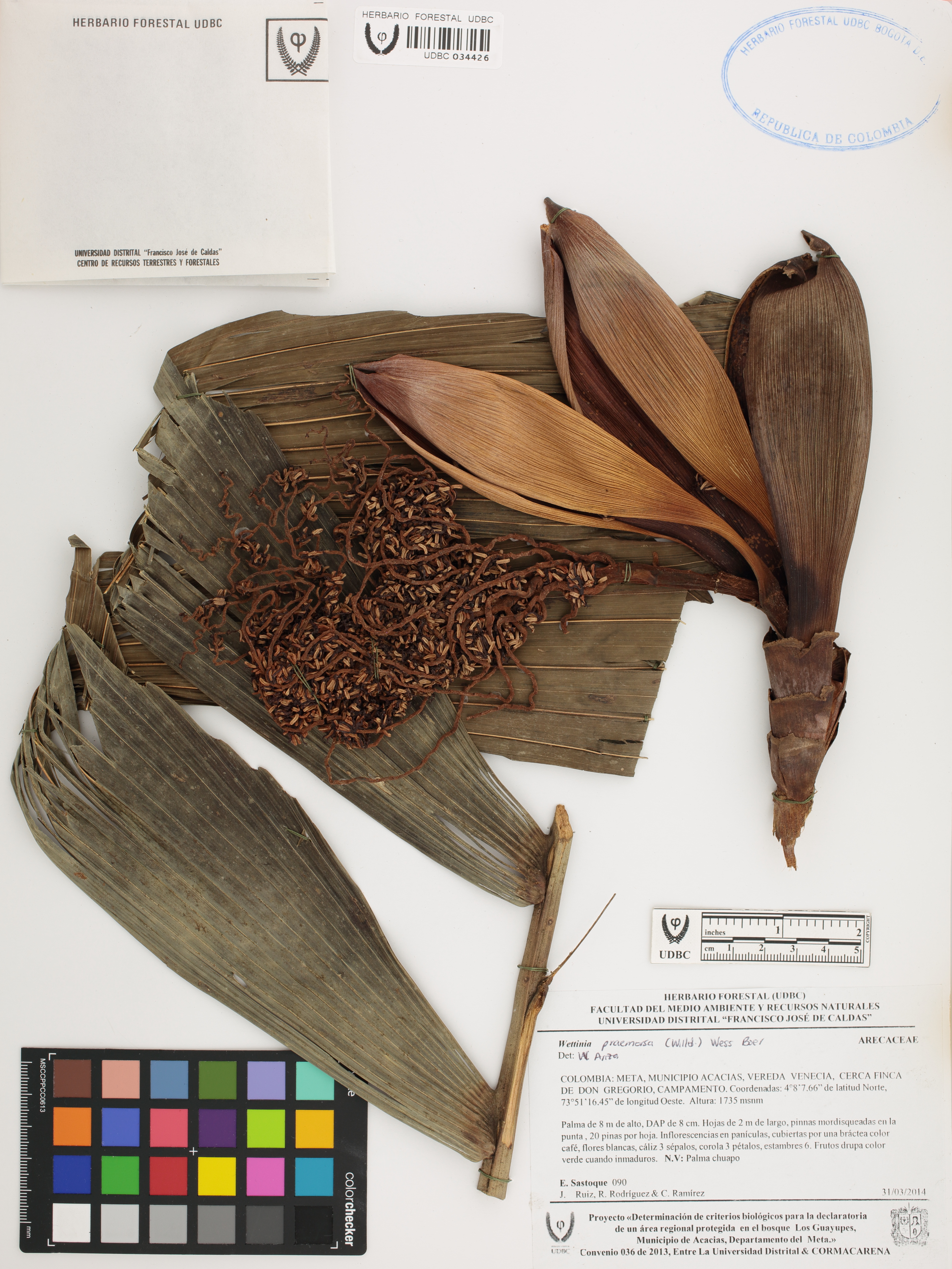 Fotografía del ejemplar Sastoque, E. 90, determinado como Wettinia praemorsa