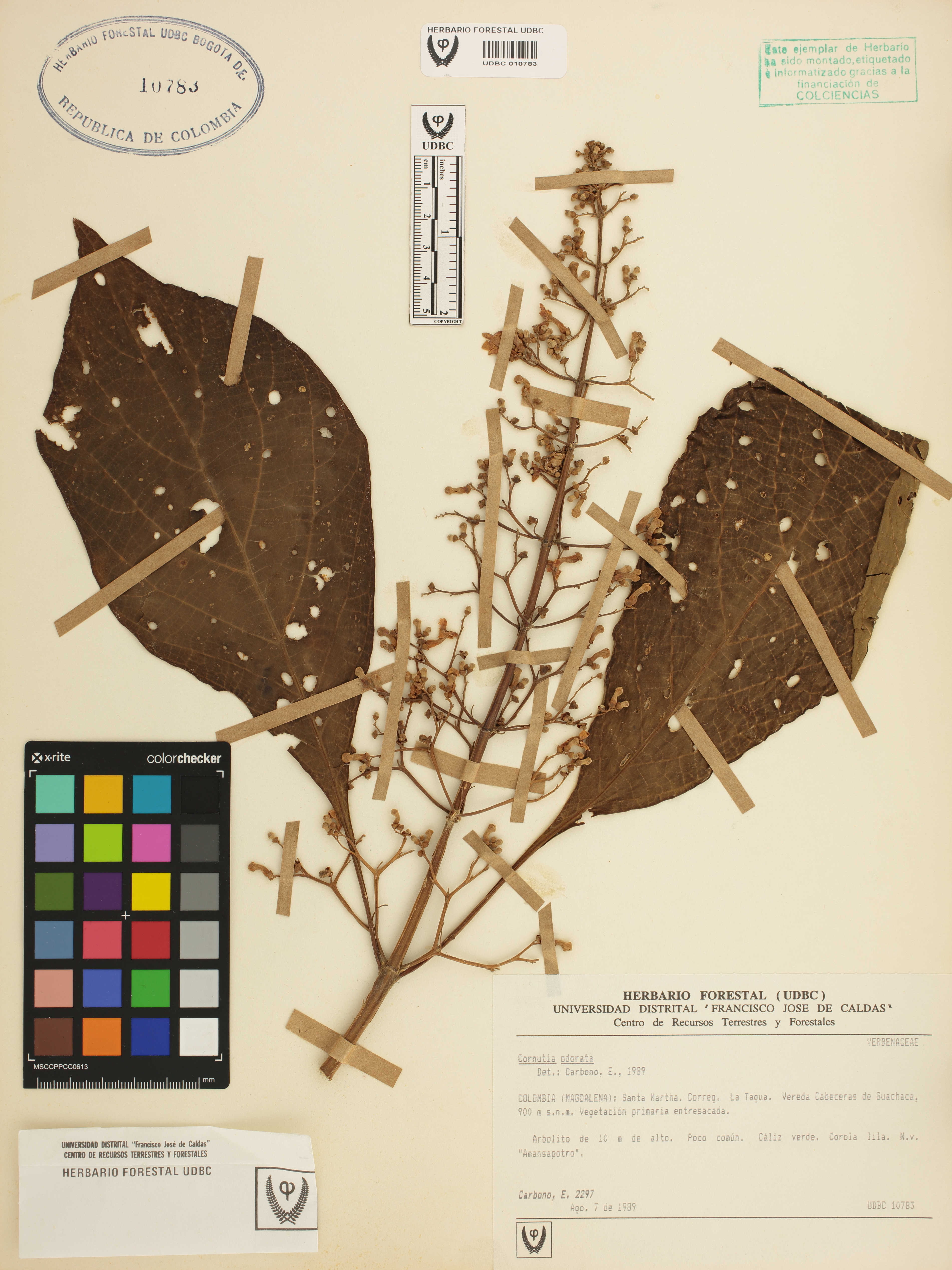 | dc.description | Fotografía del ejemplar Carbono, E. 2297, determinado como Cornutia odorata en el año 1989 | |