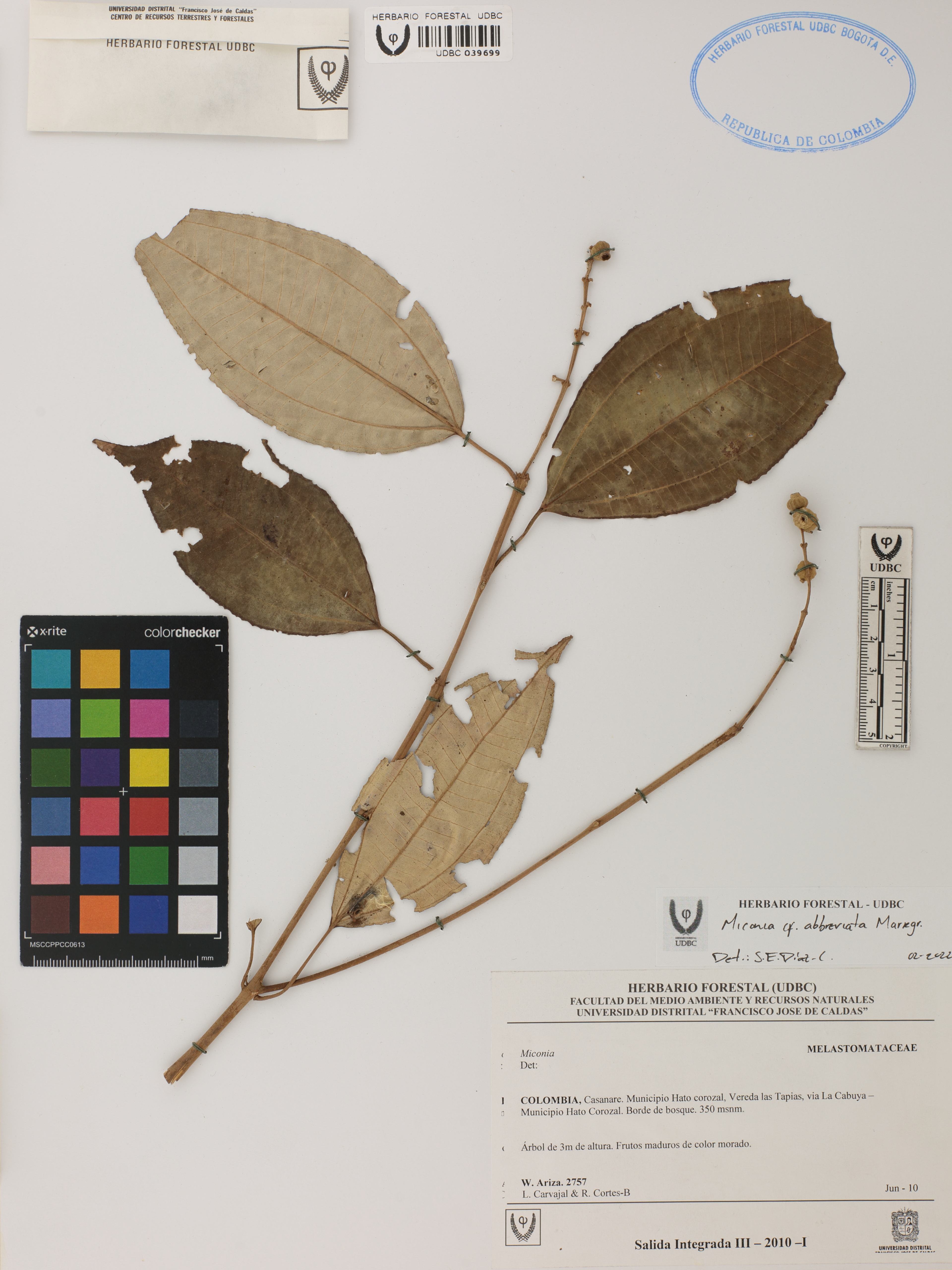 | dc.description | Fotografía del ejemplar Ariza, W. 2757, determinado como Miconia abbreviata en el año 2022 | |