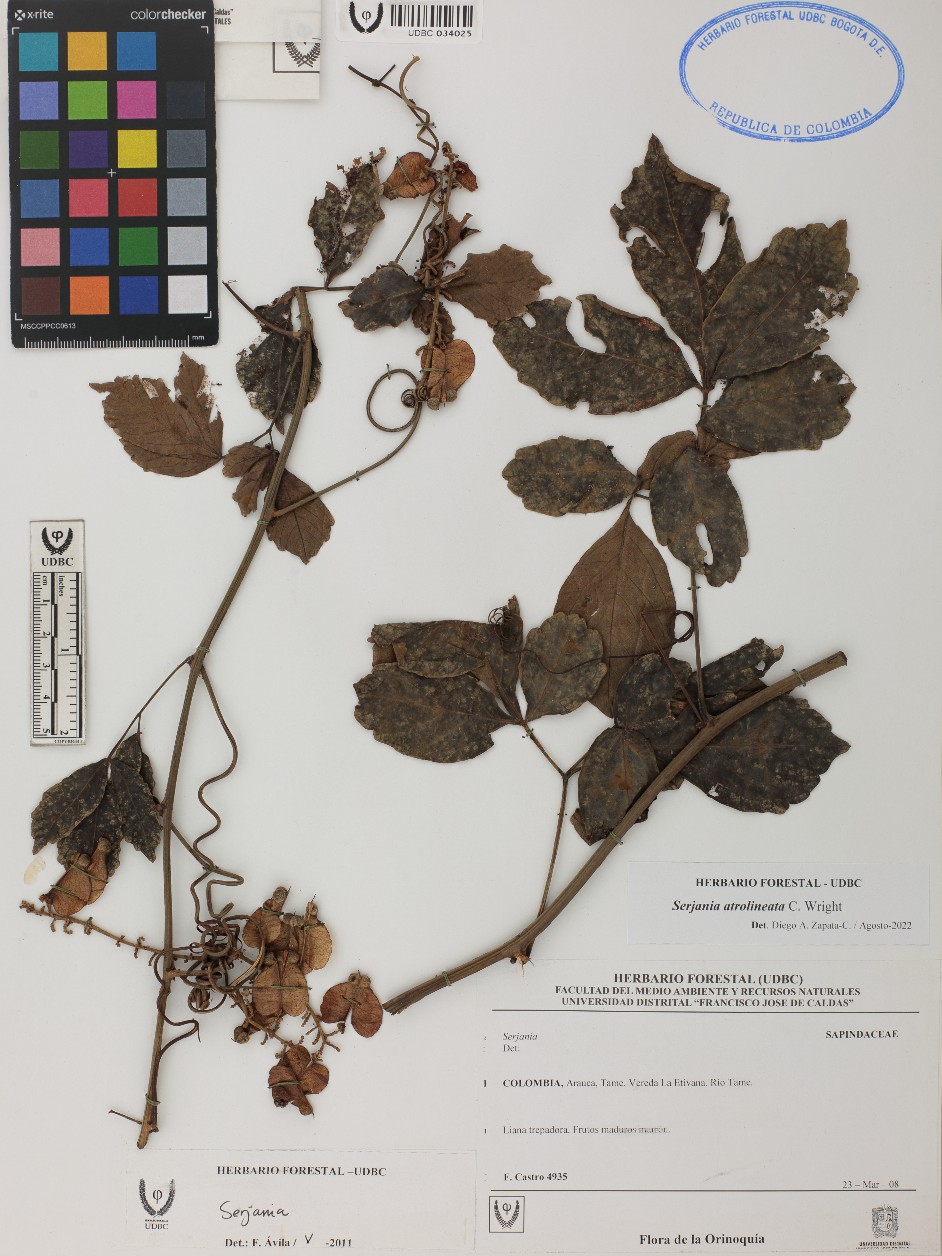 Fotografía del ejemplar Castro, F. 4935, determinado como Serjania atrolineata en el año 2022