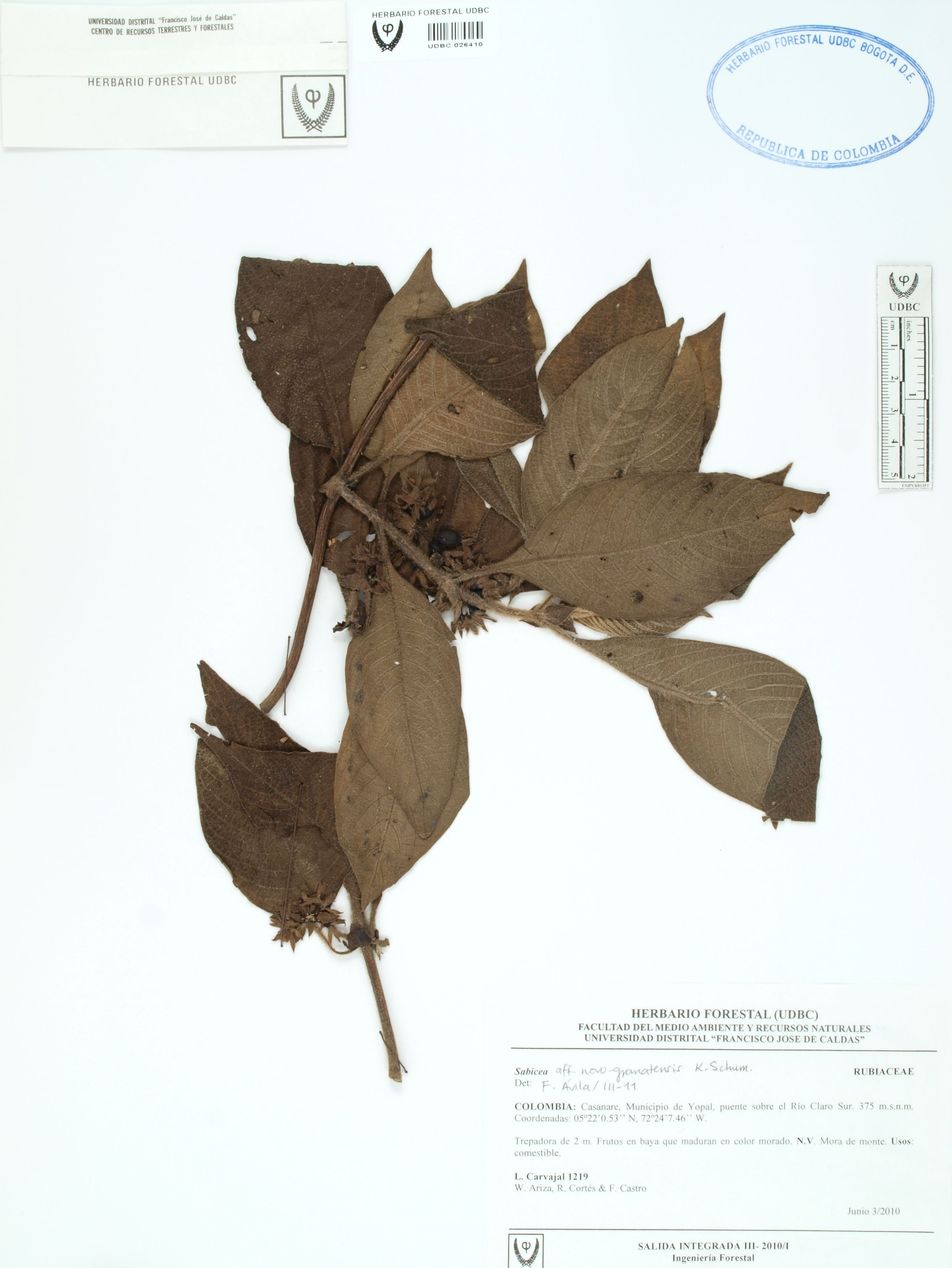 Fotografía del ejemplar Carvajal, L. 1219, determinado como Sabicea novogranatensis en el año 2011