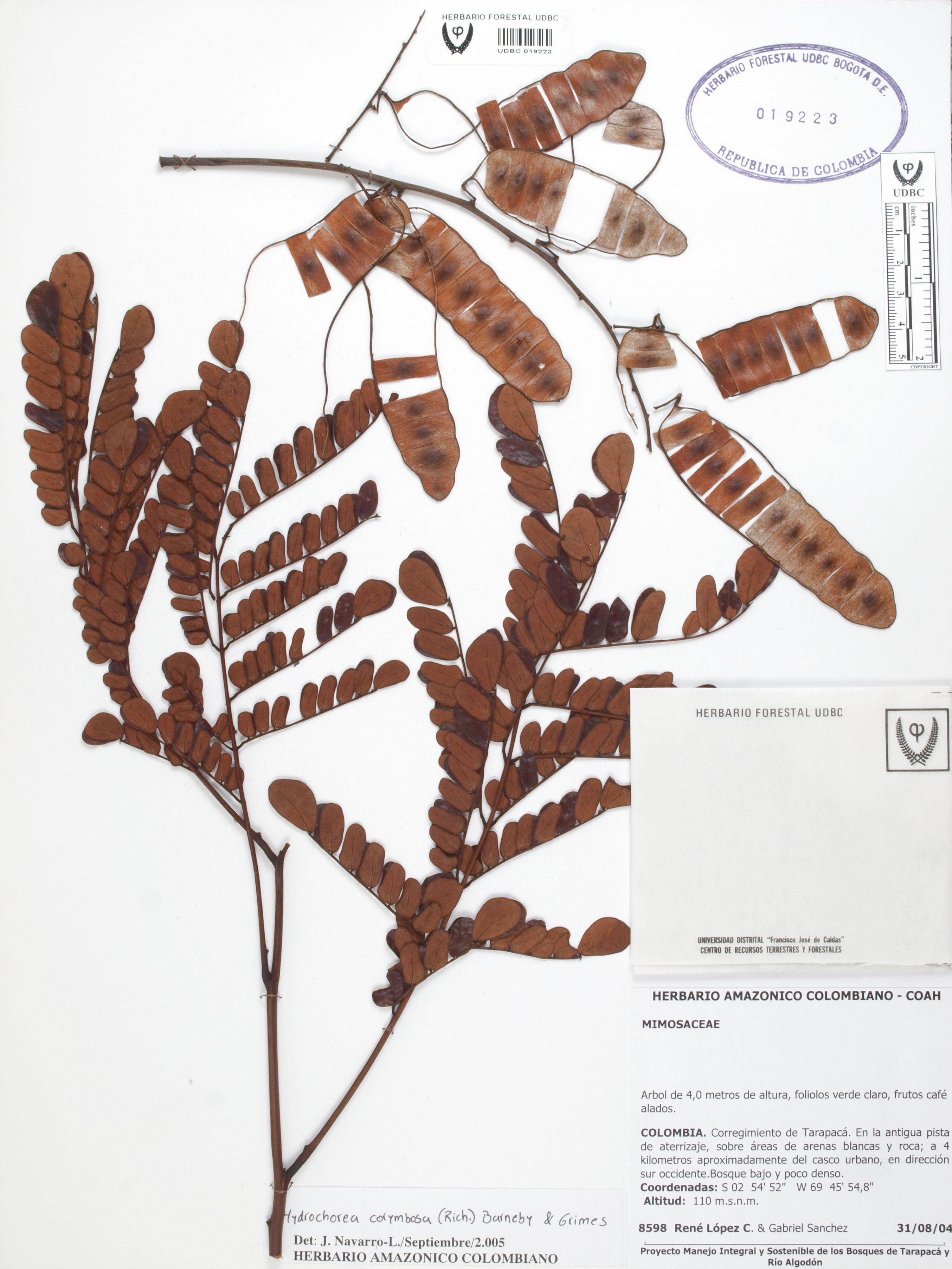 Fotografía del ejemplar López, R. 8598, determinado como Hydrochorea corymbosa en el año 2005