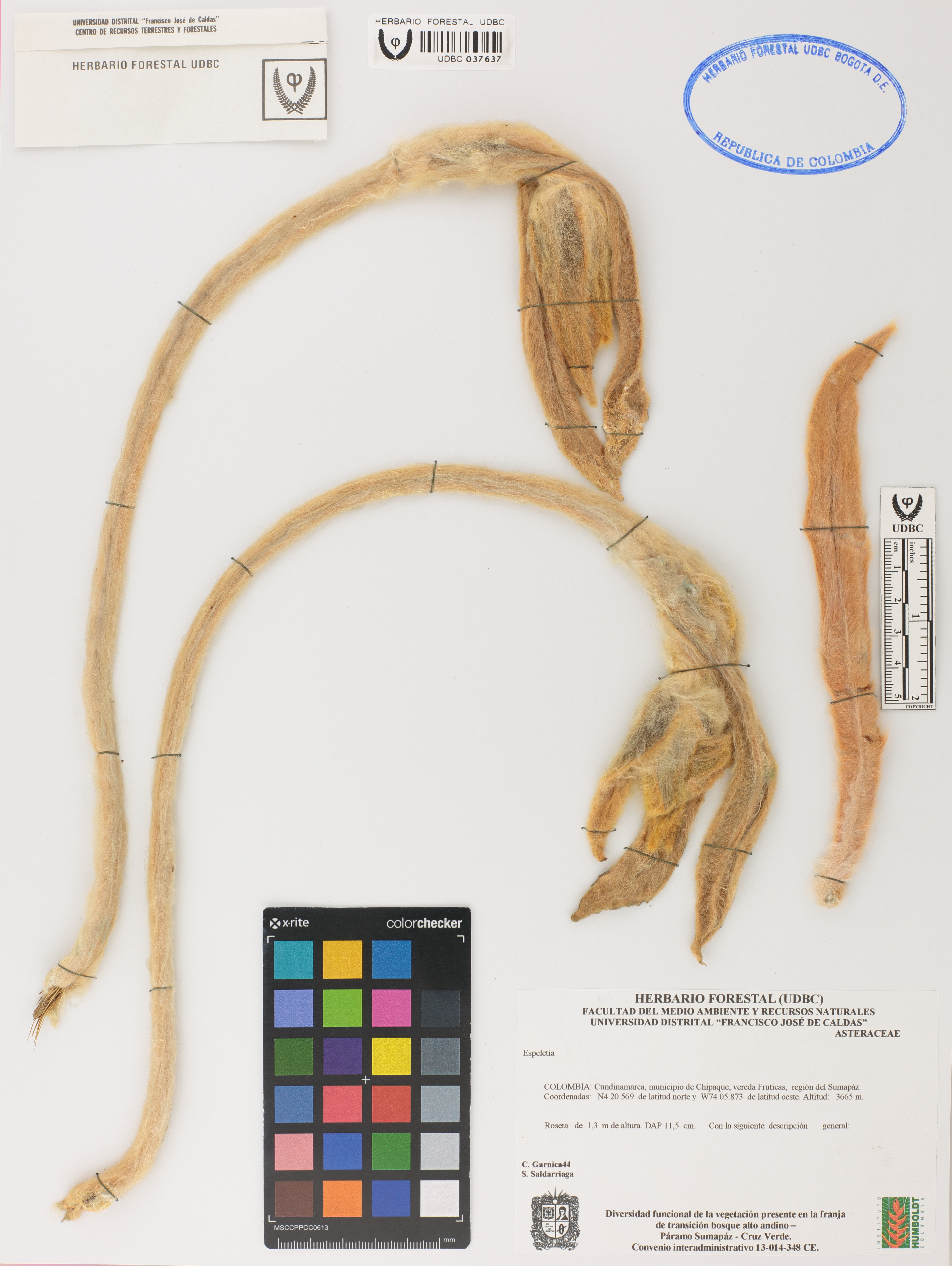 | dc.description | Fotografía del ejemplar Garnica, C. 44, determinado como Espeletia sp. | |