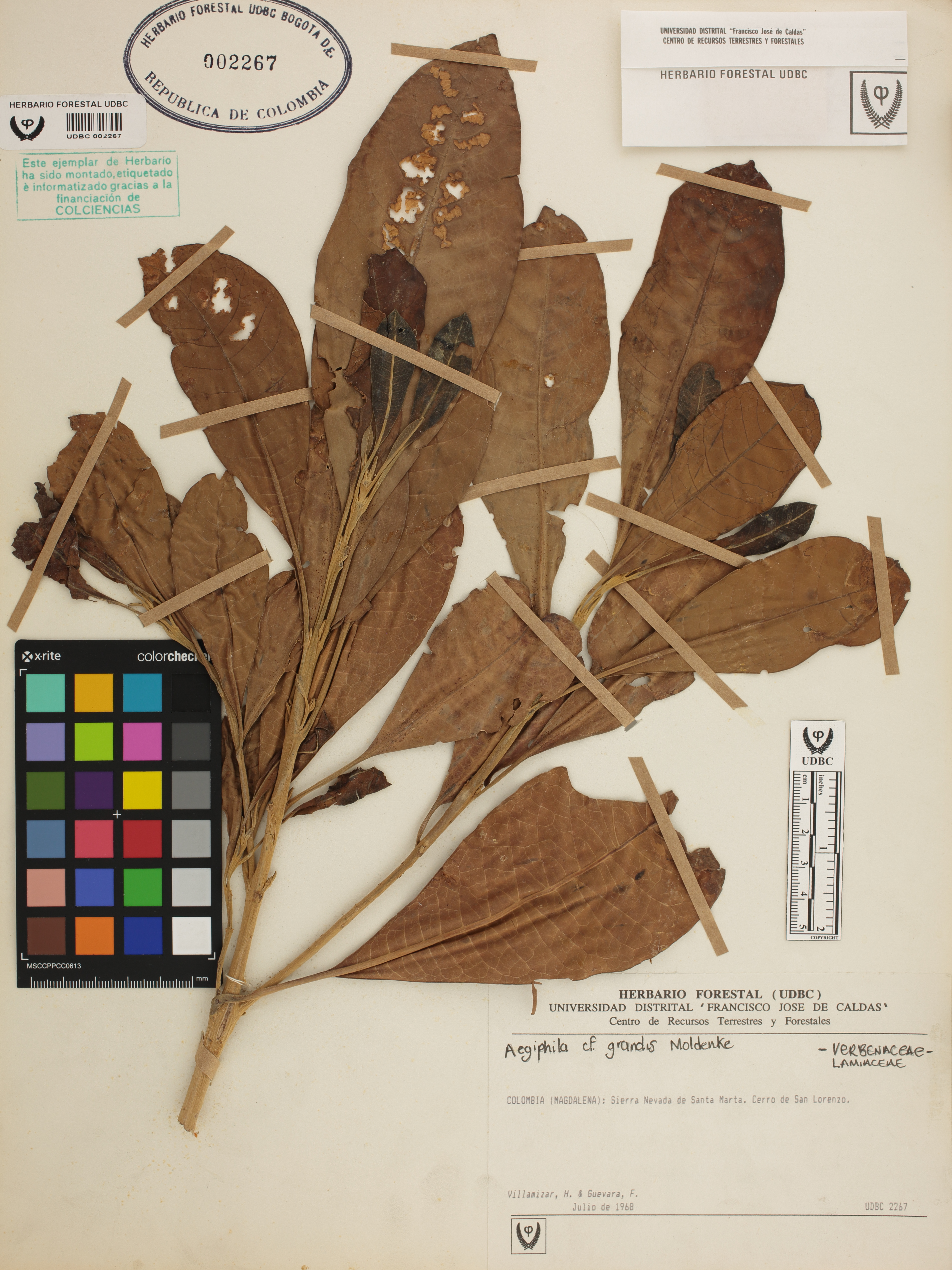Fotografía del ejemplar Villamizar, H., determinado como Aegiphila grandis
