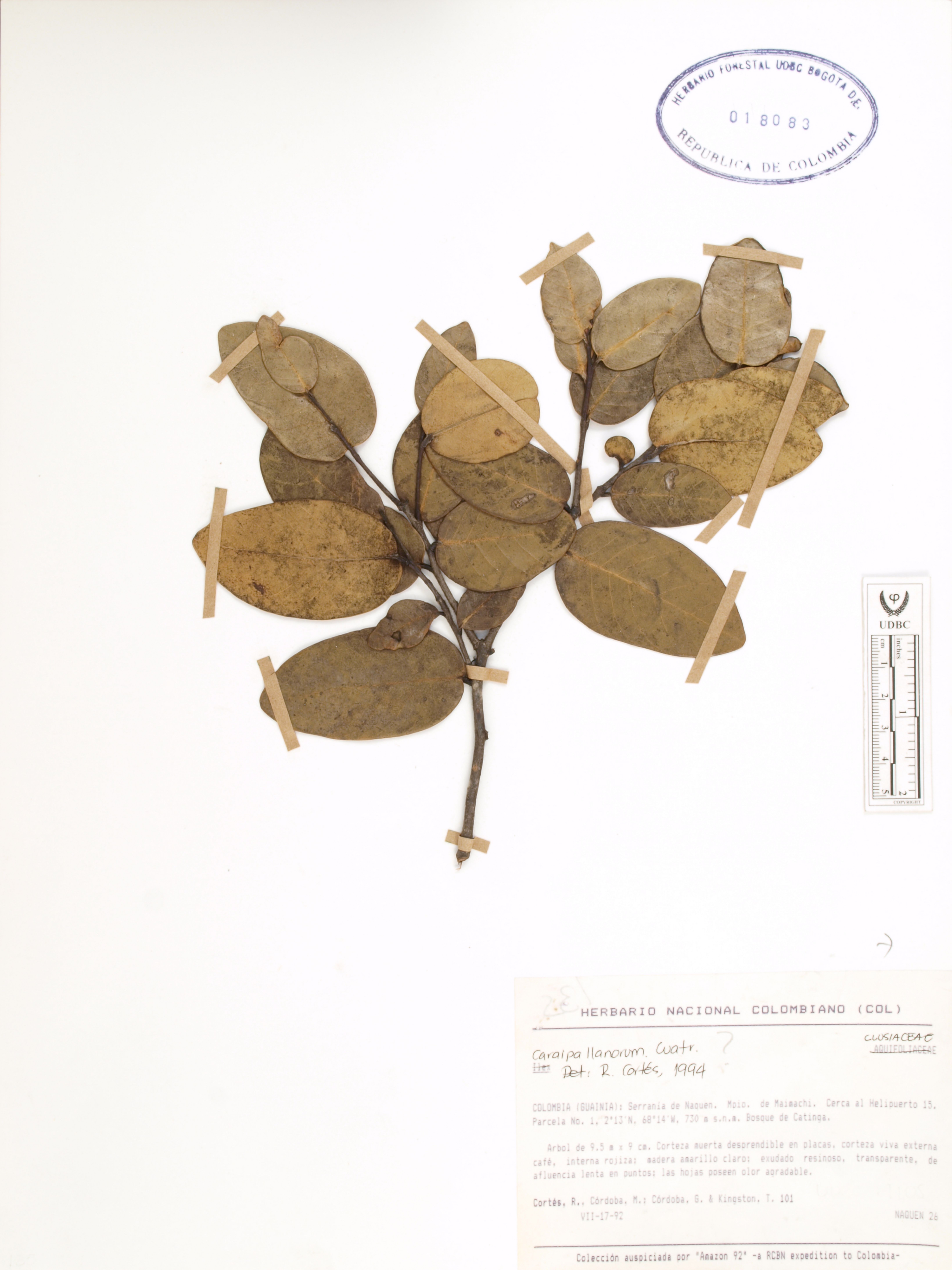 | dc.description | Fotografía del ejemplar Cortés-B., R. 101, determinado como Caraipa llanorum en el año 1994 | |