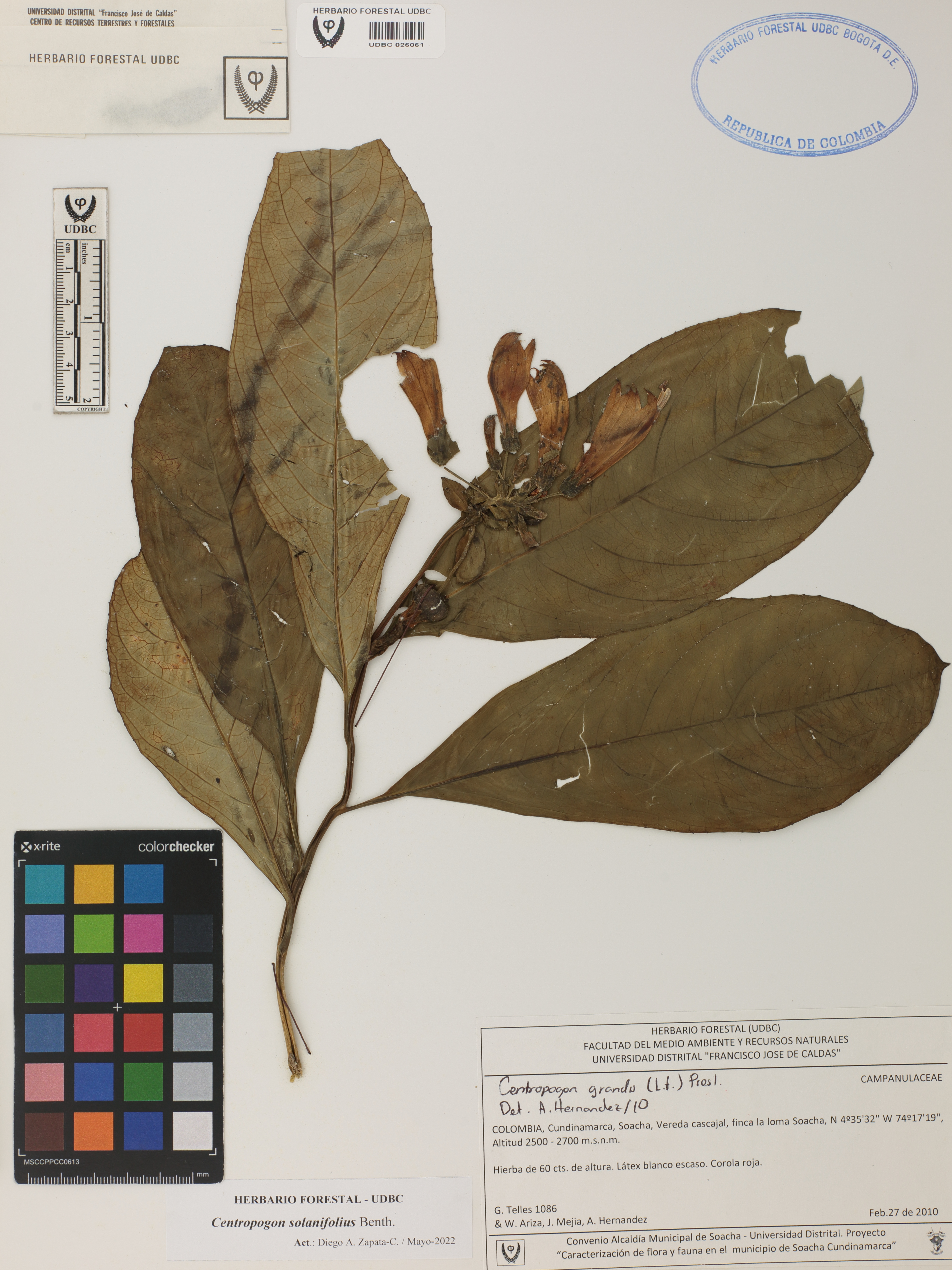 | dc.description | Fotografía del ejemplar Téllez, G. 1086, determinado como Centropogon grandis en el año 2010 | |
