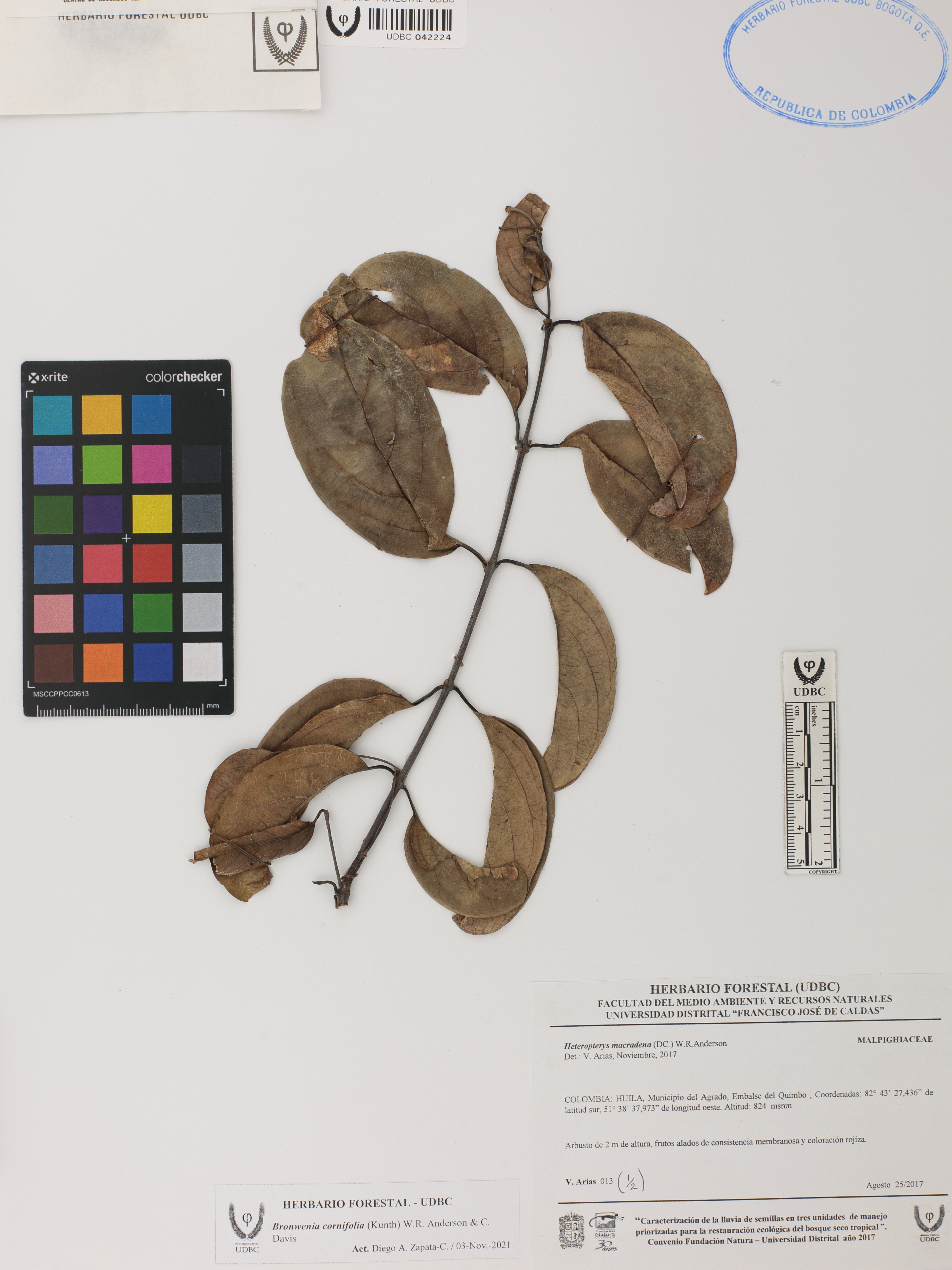 Fotografía del ejemplar Arias, V. 13 (1/2), determinado como Bronwenia cornifolia en el año 2021
