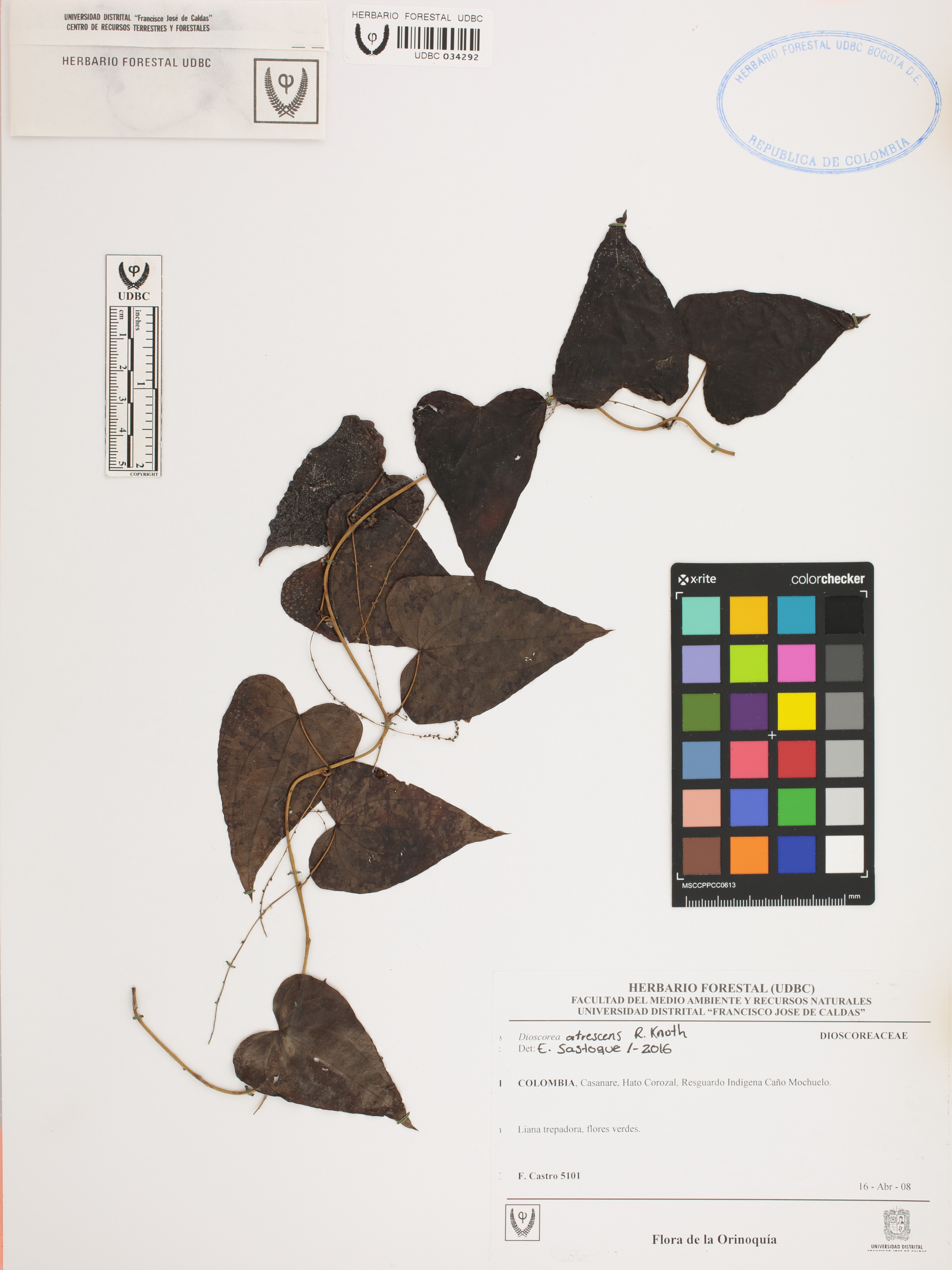 | dc.description | Fotografía del ejemplar Castro, F. 5101, determinado como Dioscorea atrescens en el año 2016 | |