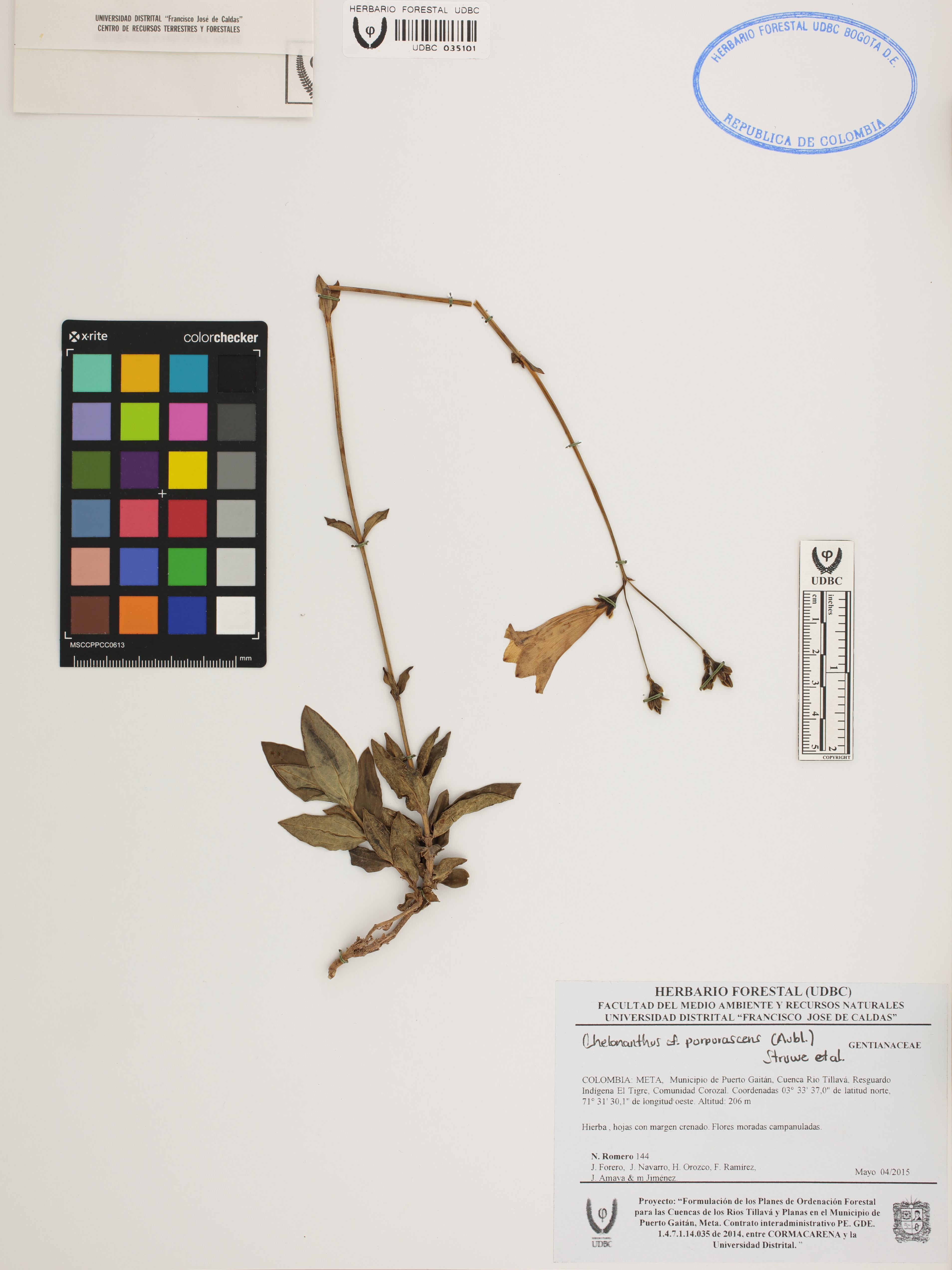 Fotografía del ejemplar Romero, N. 144, determinado como Chelonanthus purpurascens