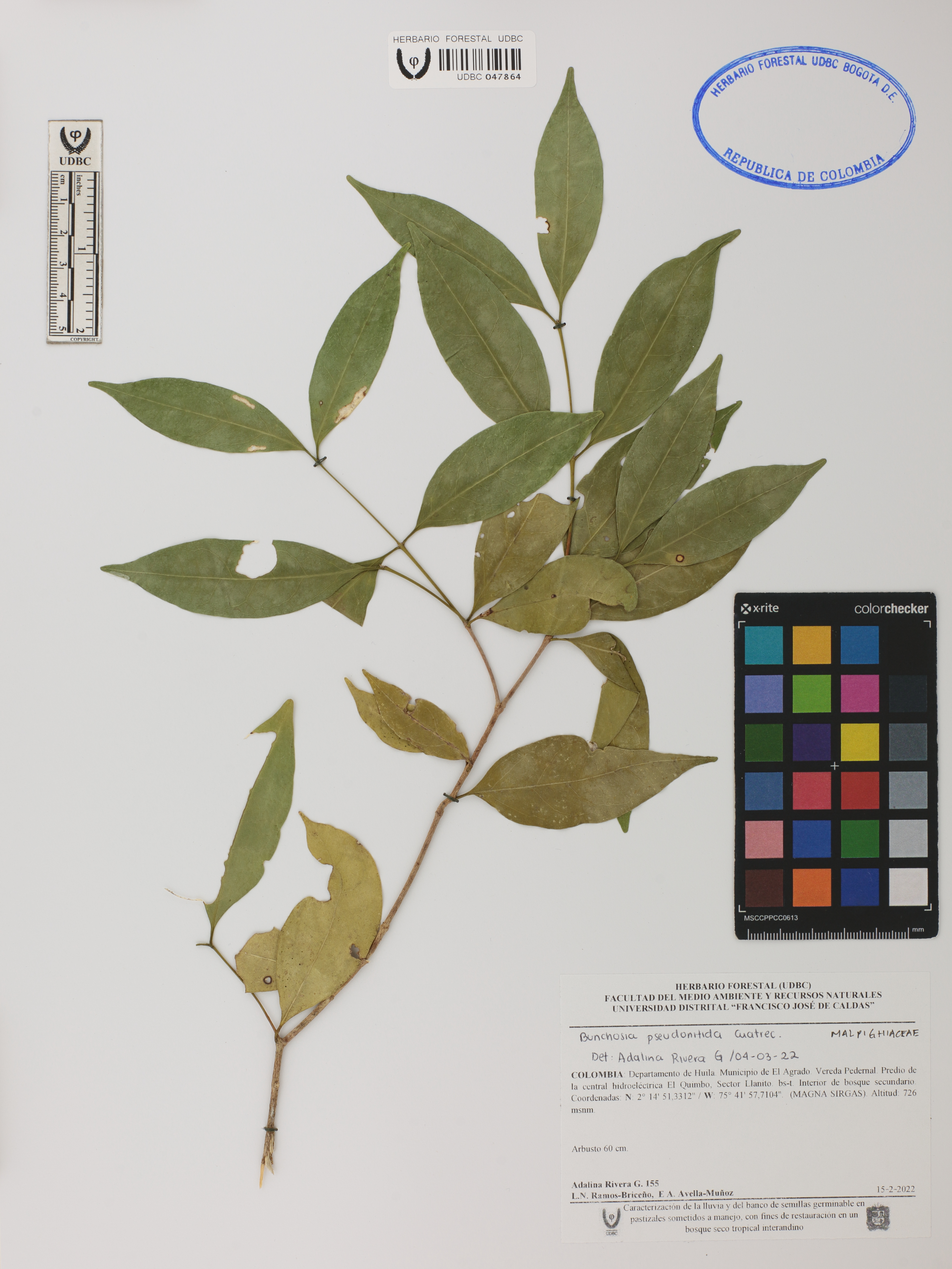 Fotografía del ejemplar Rivera-G., A. 155, determinado como Bunchosia pseudonitida en el año 2022