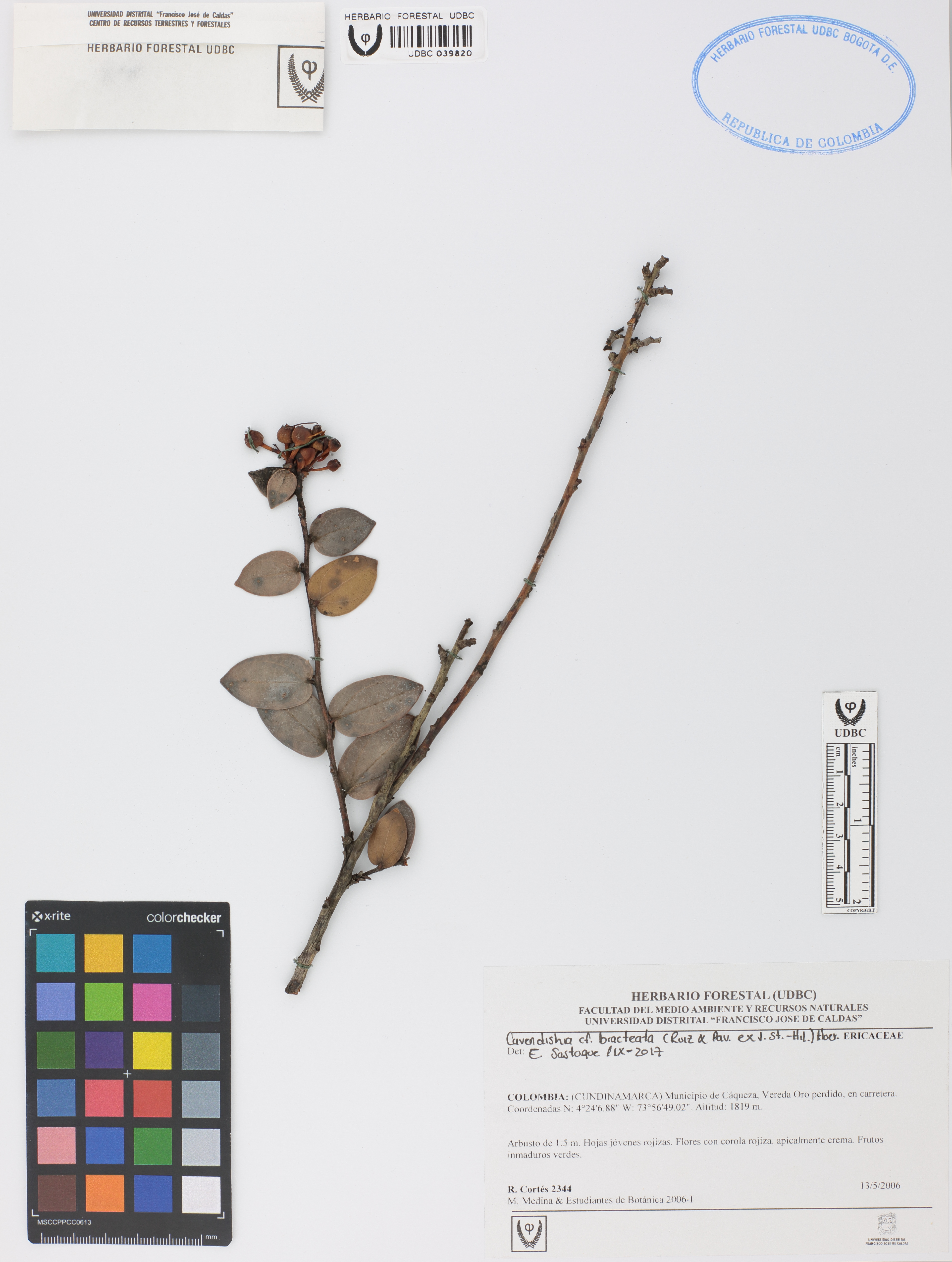 Fotografía del ejemplar Cortés, R. 2344, determinado como Cavendishia bracteata en el año 2017