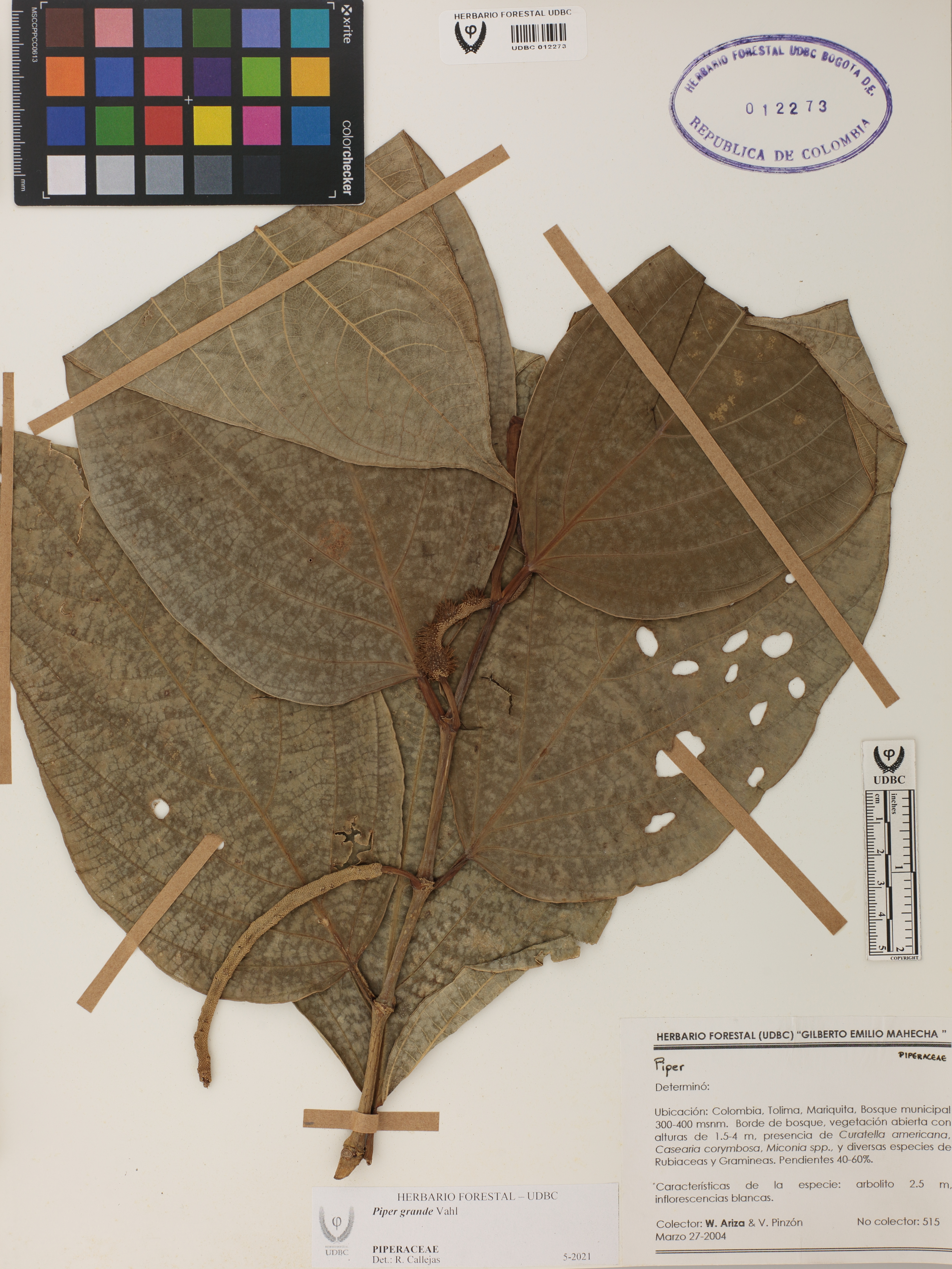 Fotografía del ejemplar Ariza, W. 515, determinado como Piper grande en el año 2021