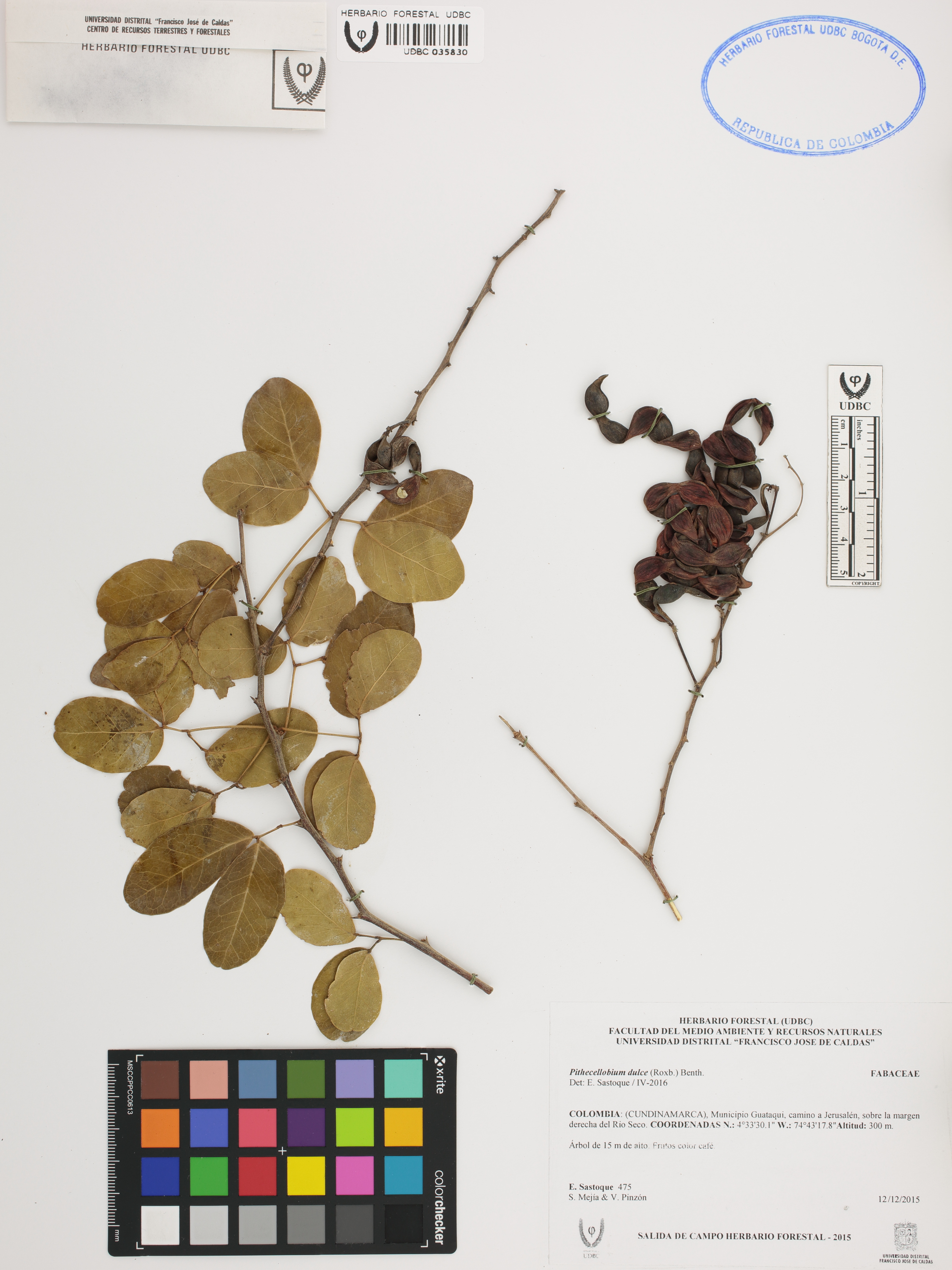 Fotografía del ejemplar Sastoque, E. 475, determinado como Pithecellobium dulce en el año 2016