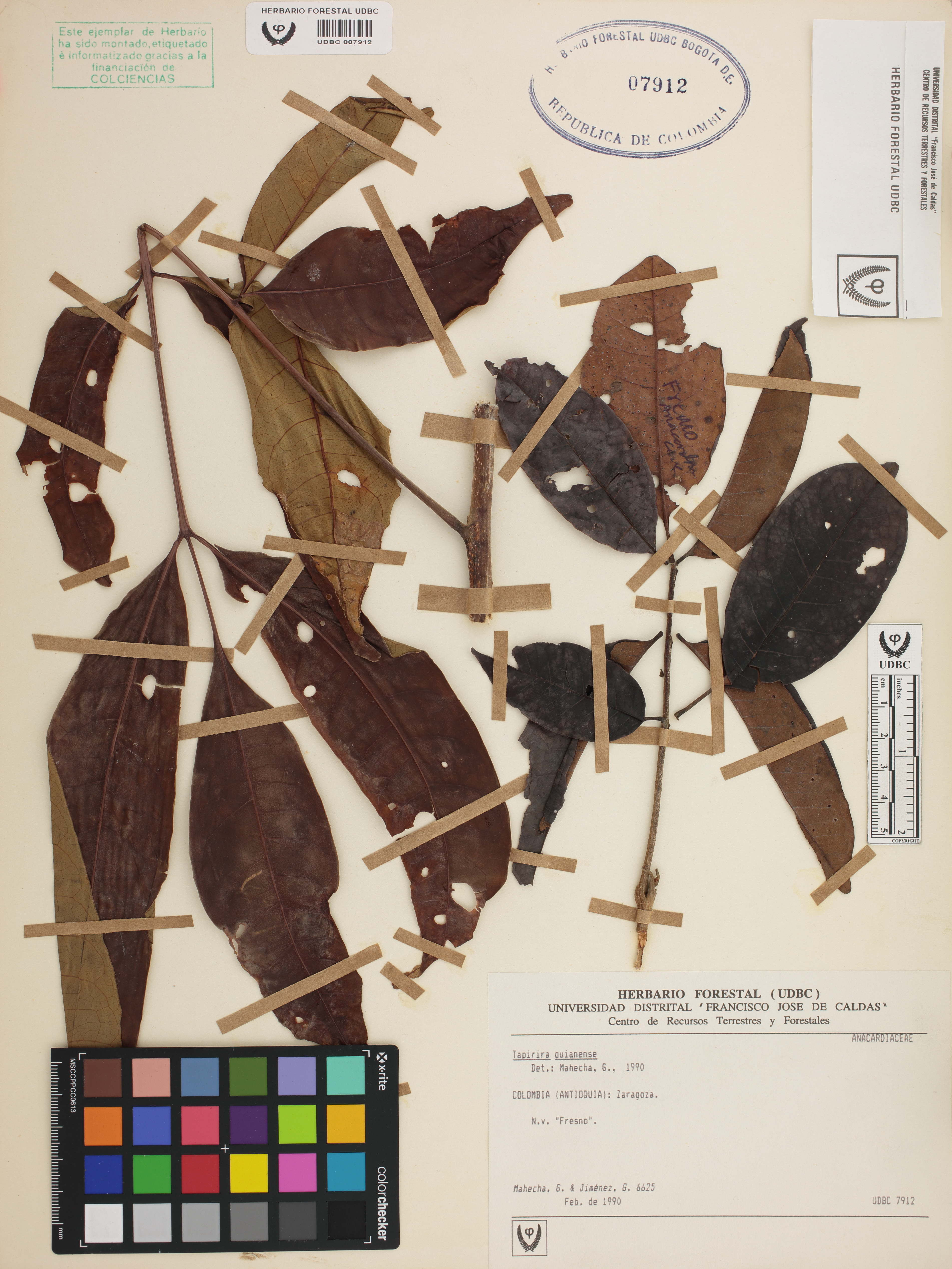 | dc.description | Fotografía del ejemplar Mahecha, G. 6625, determinado como Tapirira guianensis en el año 1990 | |