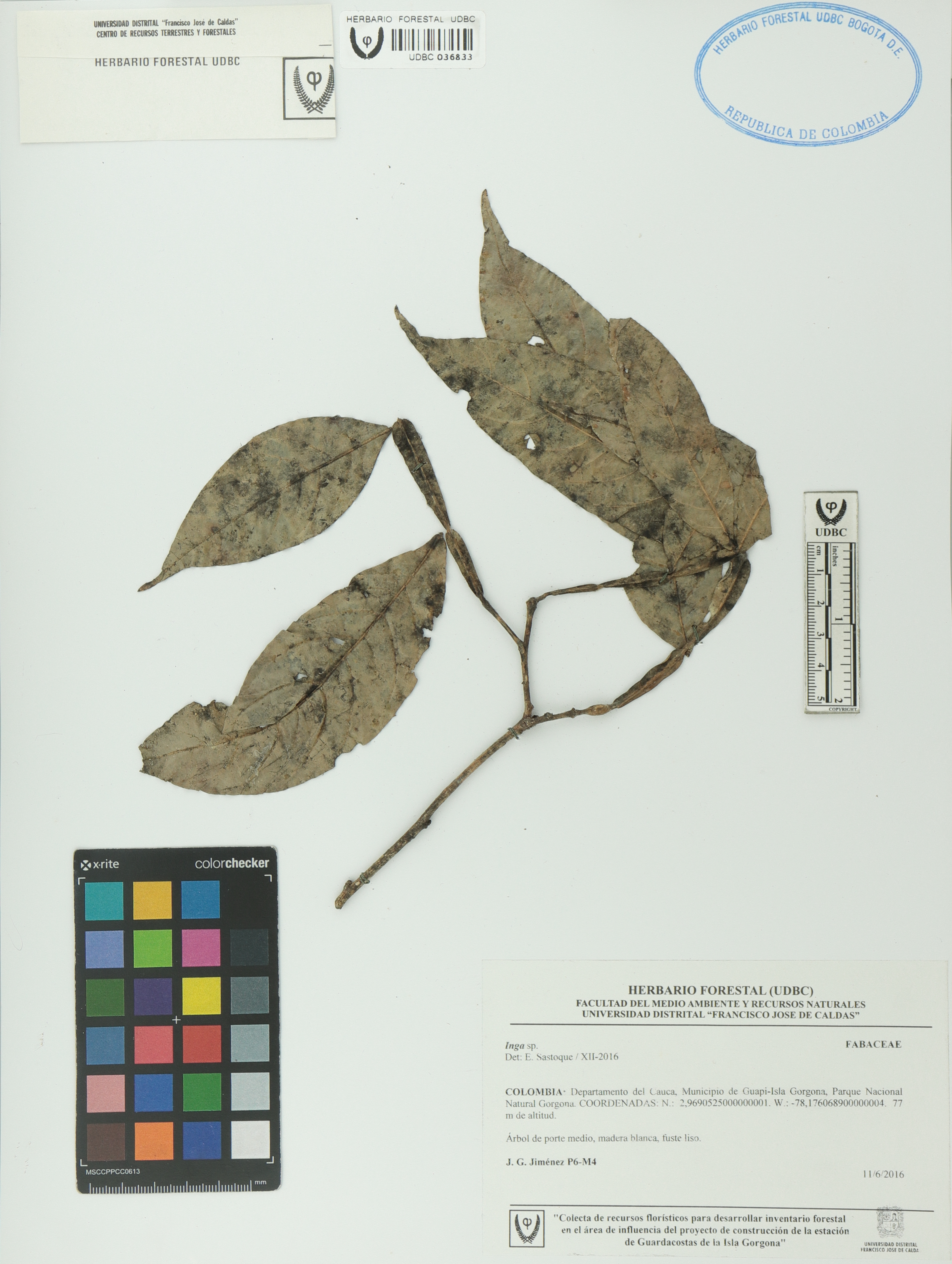 Fotografía del ejemplar Jiménez, J. P6-M4, determinado como Inga sp. en el año 2016