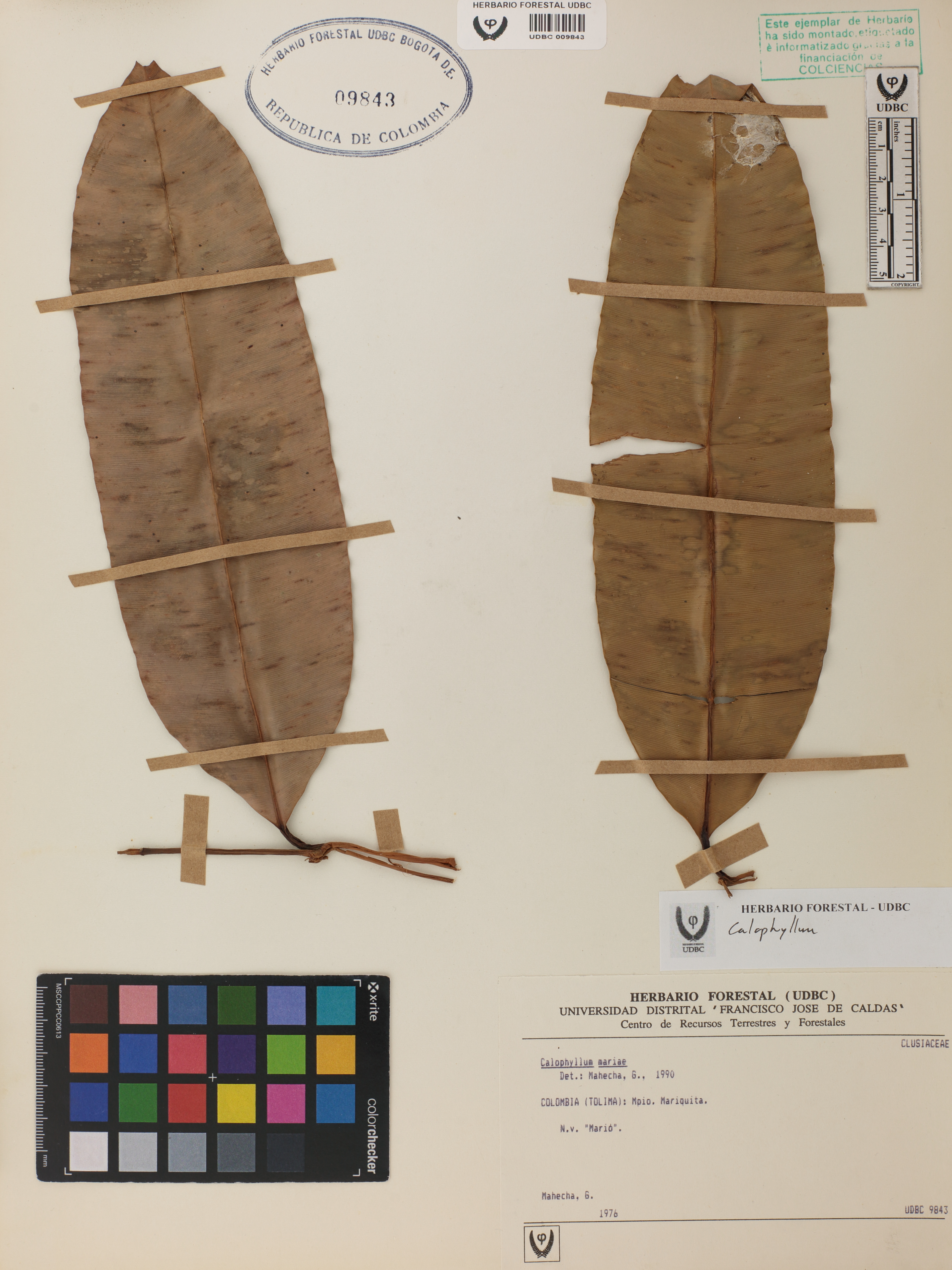 Fotografía del ejemplar Mahecha, G., determinado como Calophyllum sp.