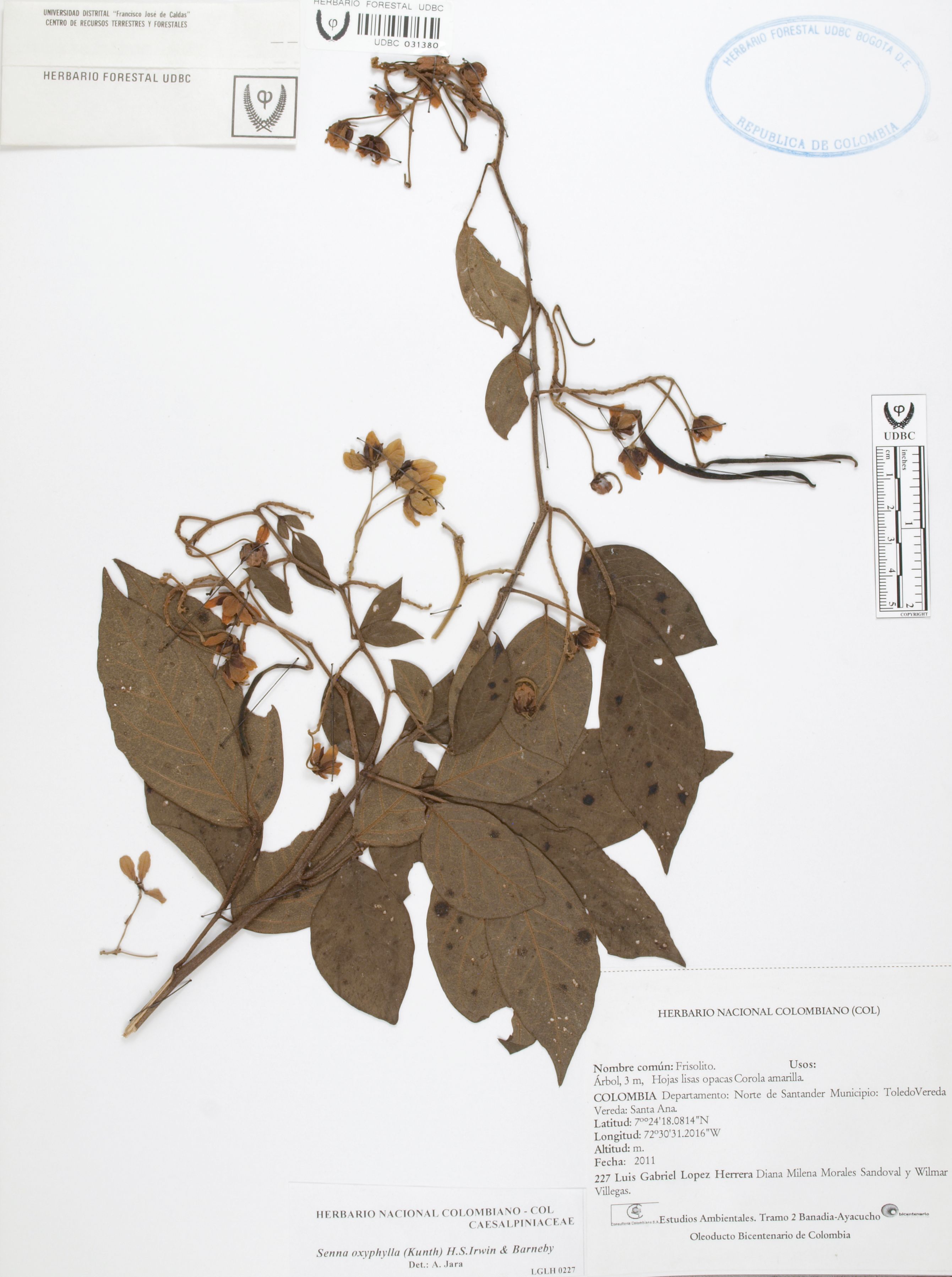 Fotografía del ejemplar López, L. 227, determinado como Senna oxyphylla