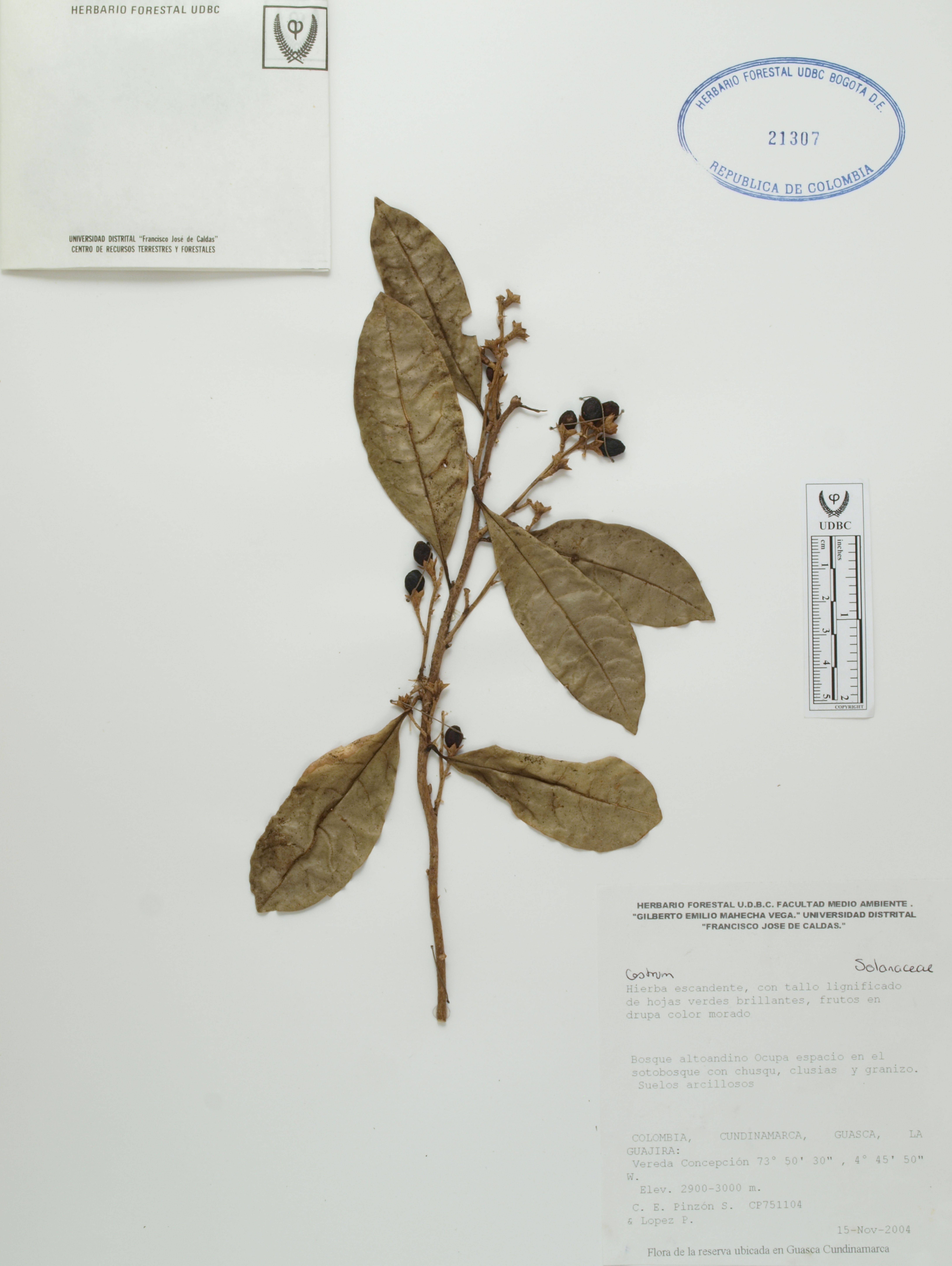 Fotografía del ejemplar Pinzón, C. 75, determinado como Cestrum cuneifolium en el año 2009