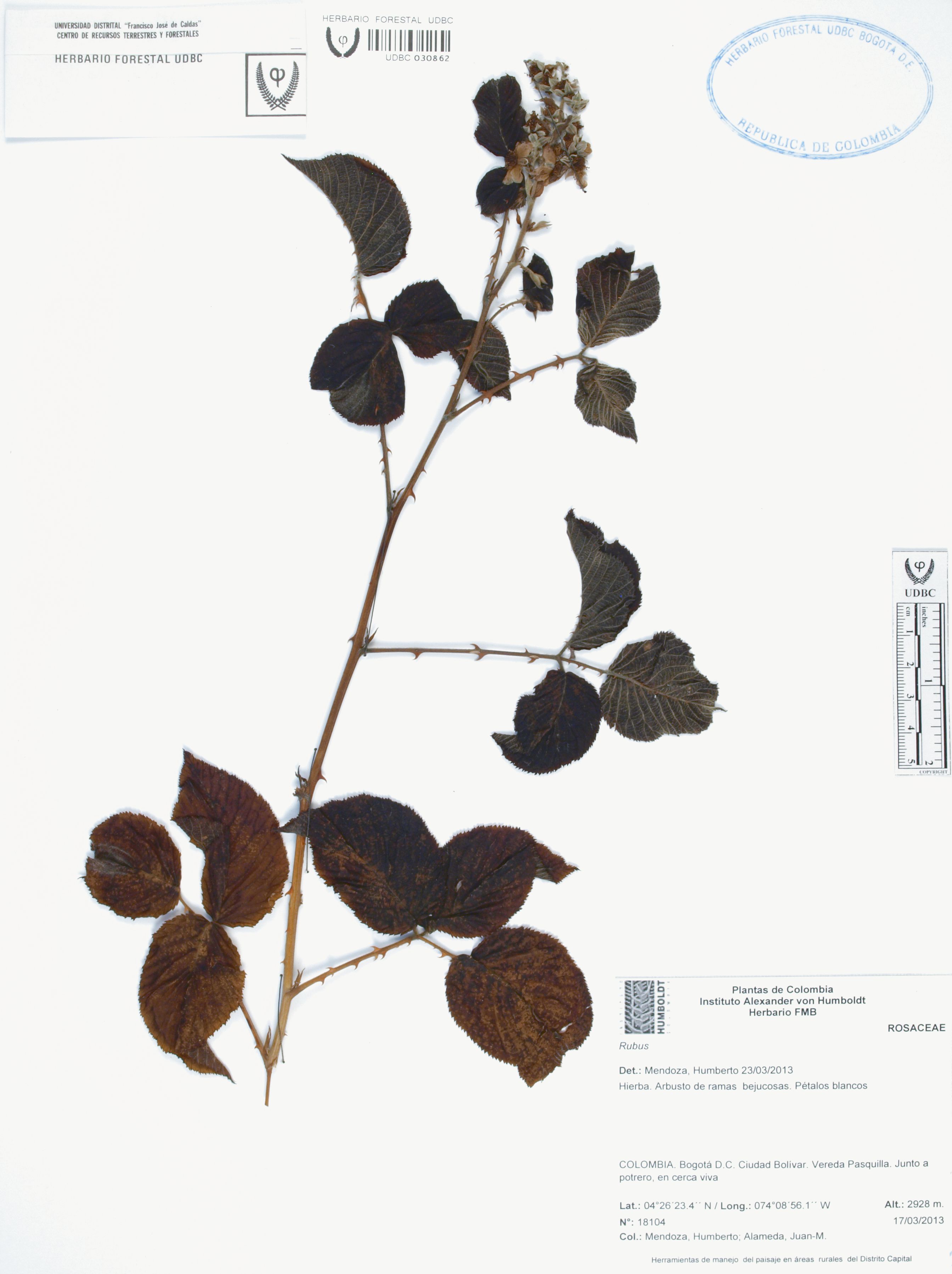 Fotografía del ejemplar Mendoza, H. 18104, determinado como Rubus sp. en el año 2013