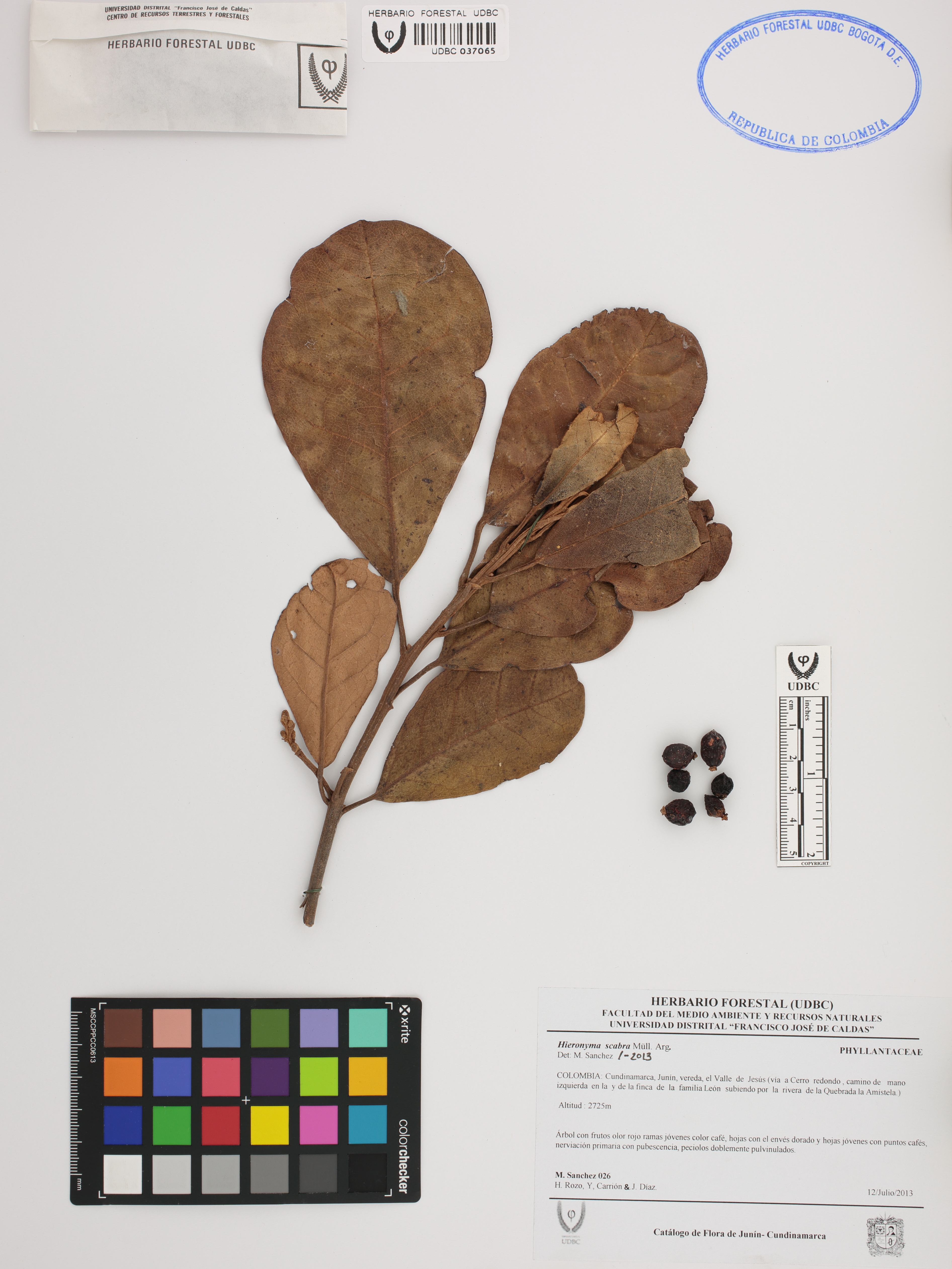 | dc.description | Fotografía del ejemplar Sánchez, M. 26, determinado como Hieronyma scabra en el año 2013 | |