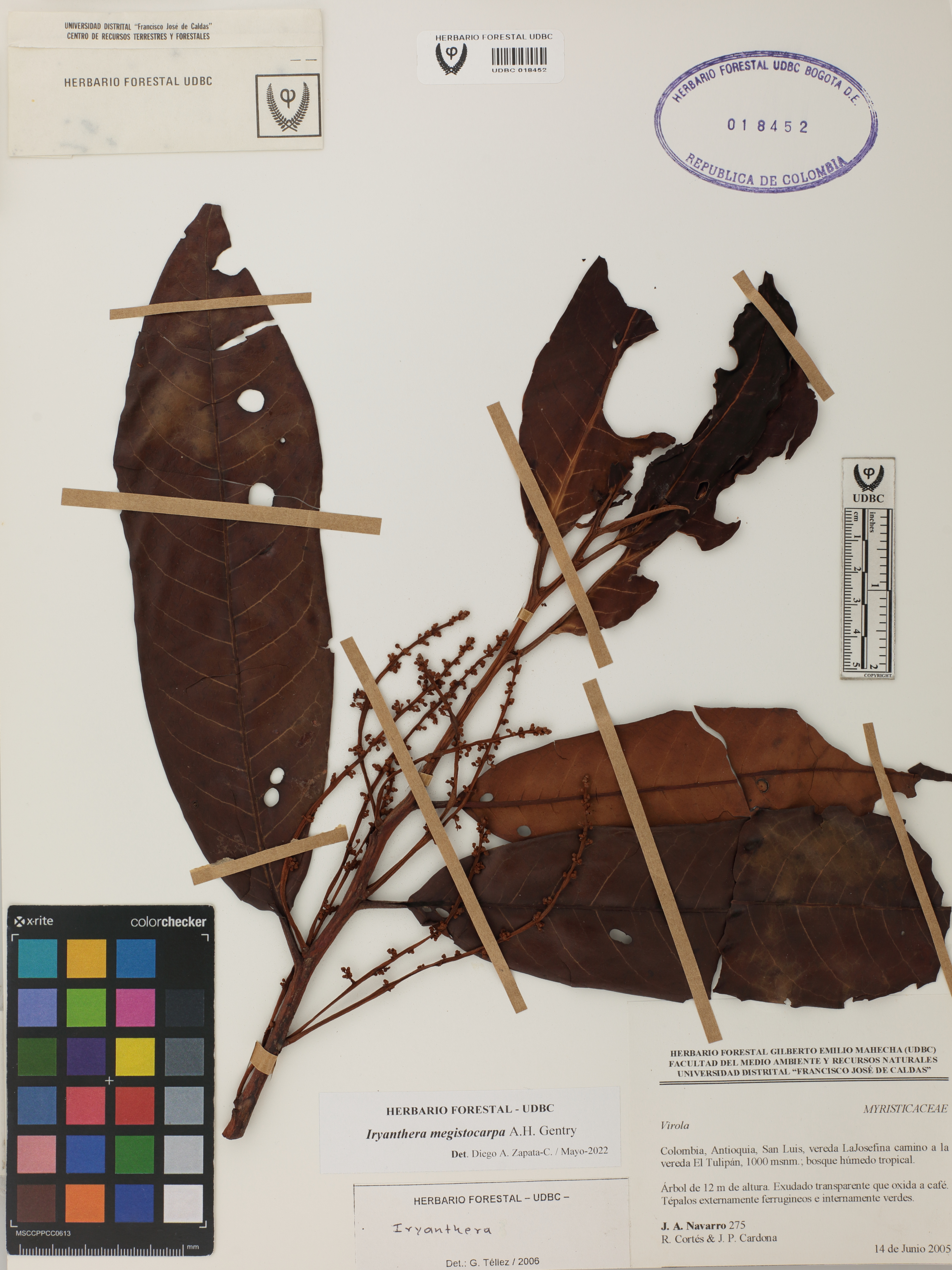 | dc.description | Fotografía del ejemplar Navarro, J. 275, determinado como Iryanthera megistocarpa en el año 2022 | |