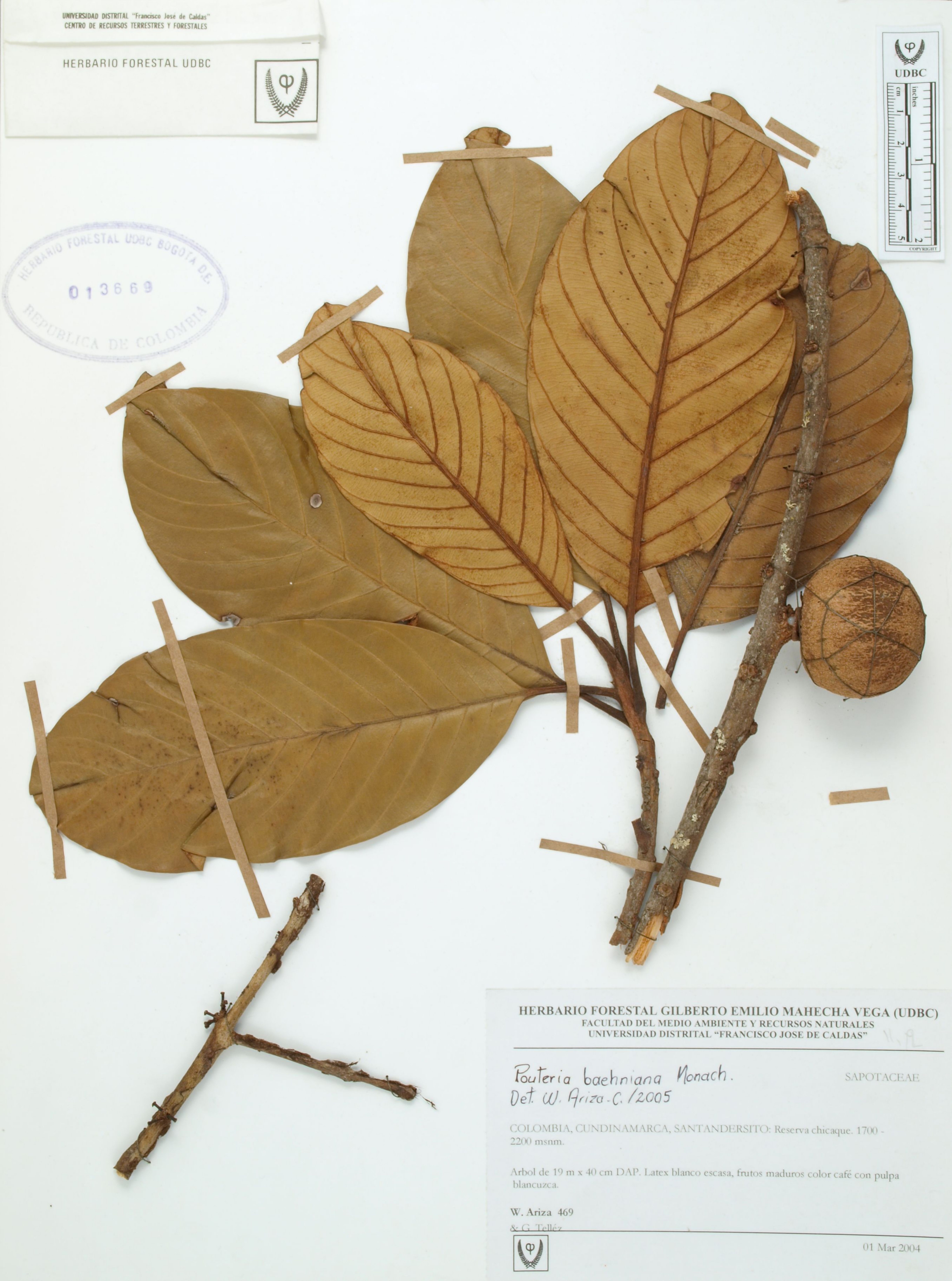 | dc.description | Fotografía del ejemplar Ariza, W. 469, determinado como Pouteria baehniana en el año 2005 | |
