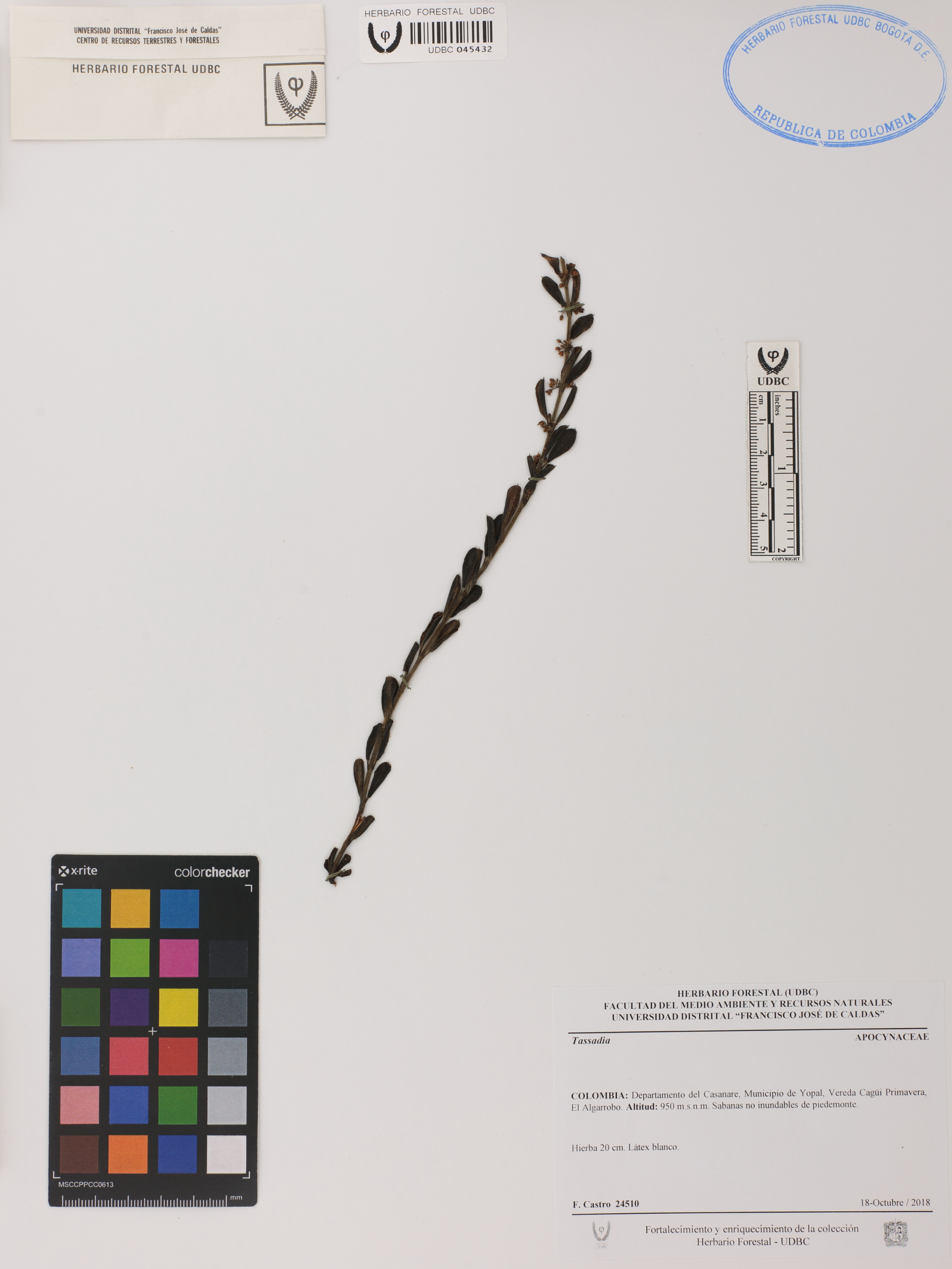 | dc.description | Fotografía del ejemplar Castro, F. 24510, determinado como Tassadia sp. | |