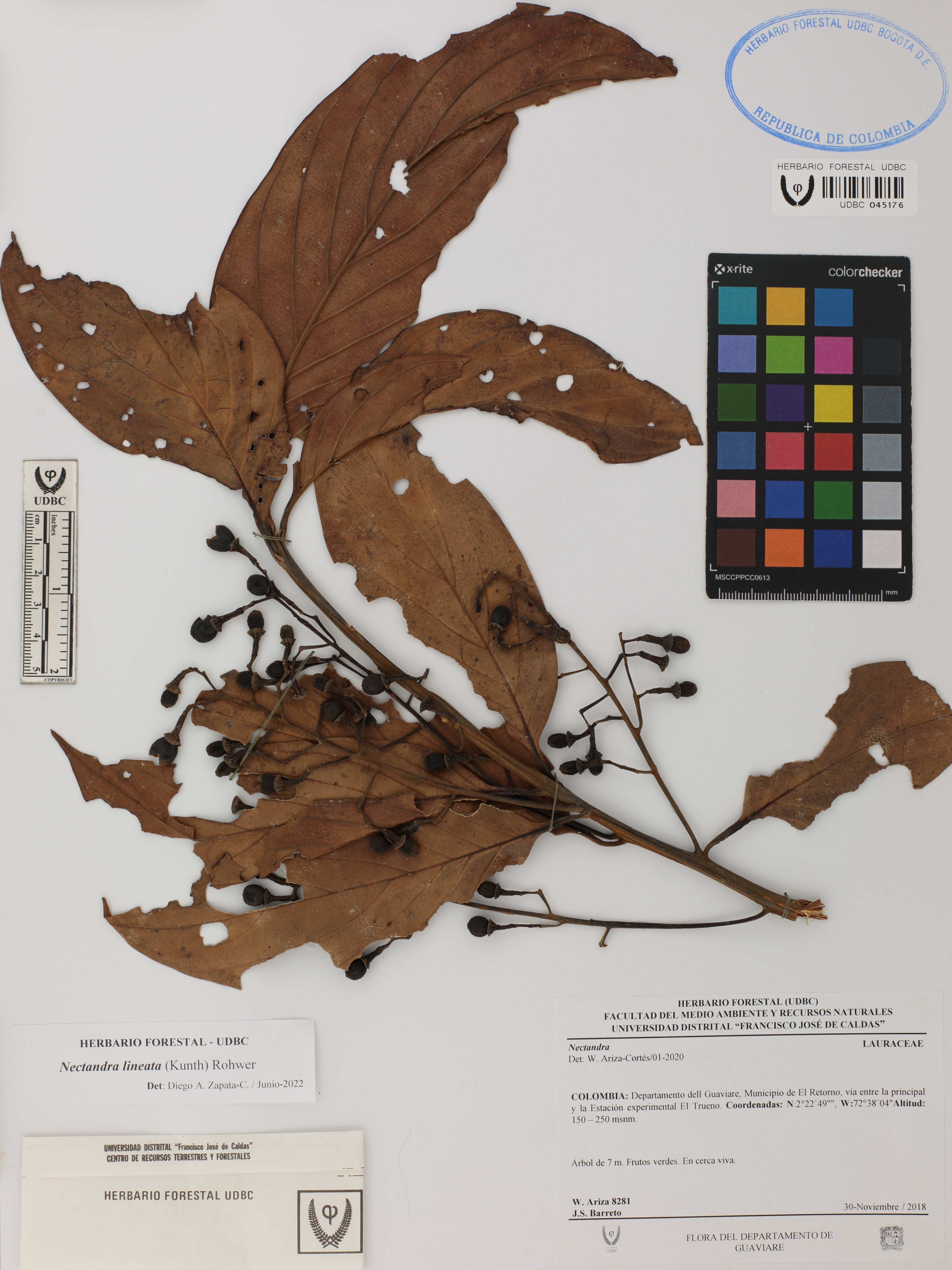 | dc.description | Fotografía del ejemplar Ariza-Cortés, W. 8281, determinado como Nectandra lineata en el año 2022 | |