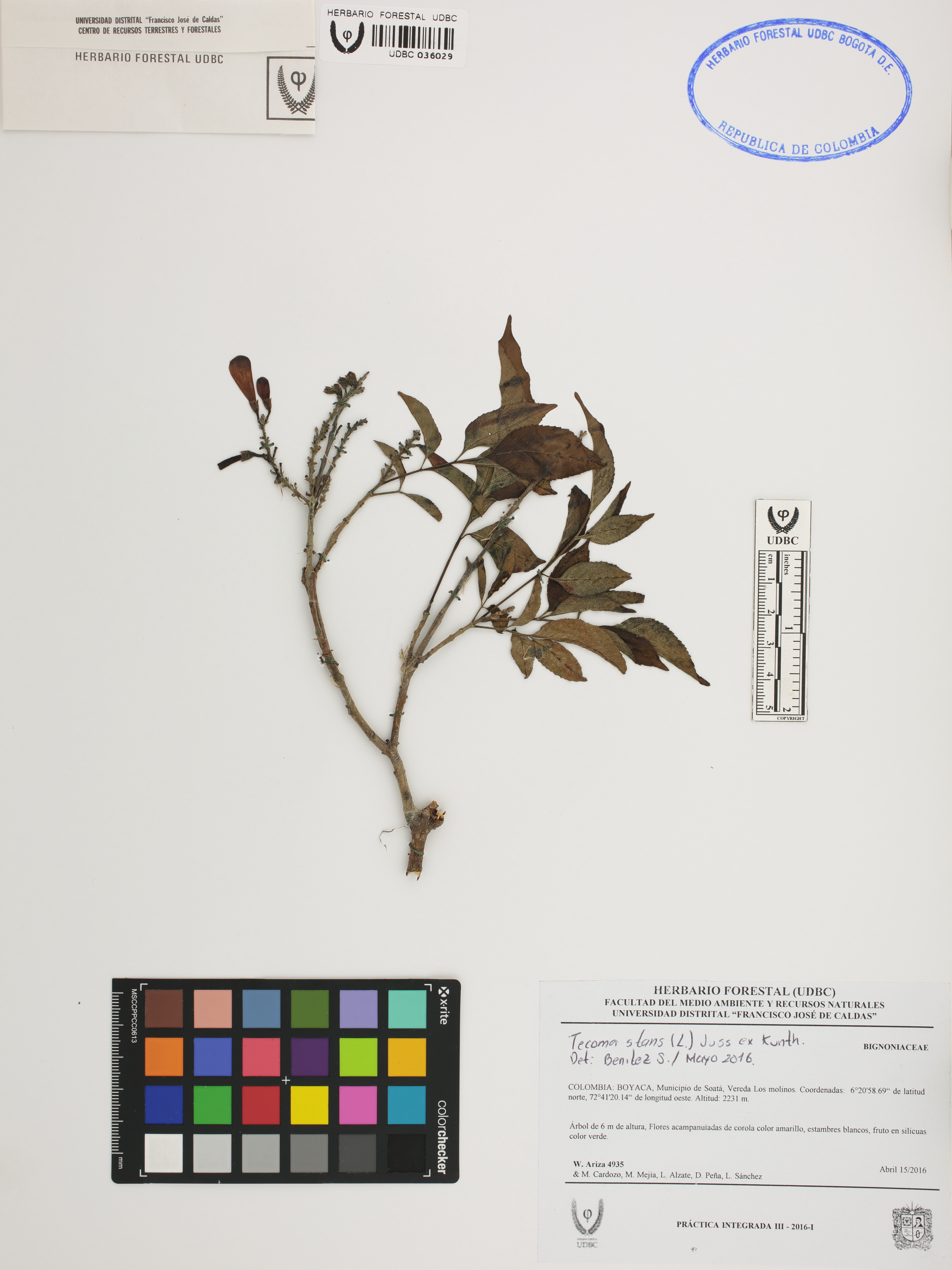 | dc.description | Fotografía del ejemplar Ariza, W. 4935, determinado como Tecoma stans en el año 2016 | |