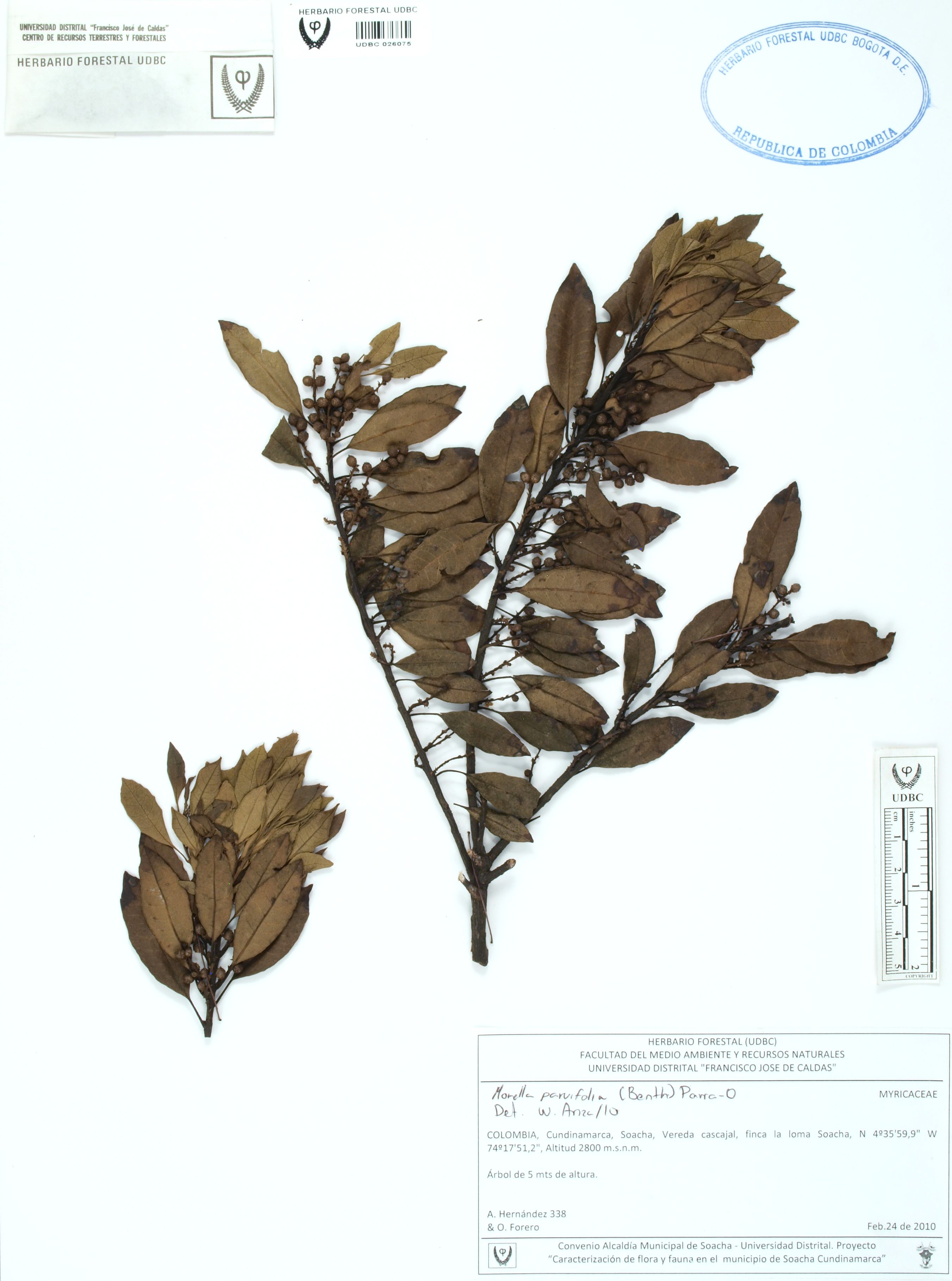 Fotografía del ejemplar Hernández, A. 338, determinado como Morella parvifolia en el año 2010