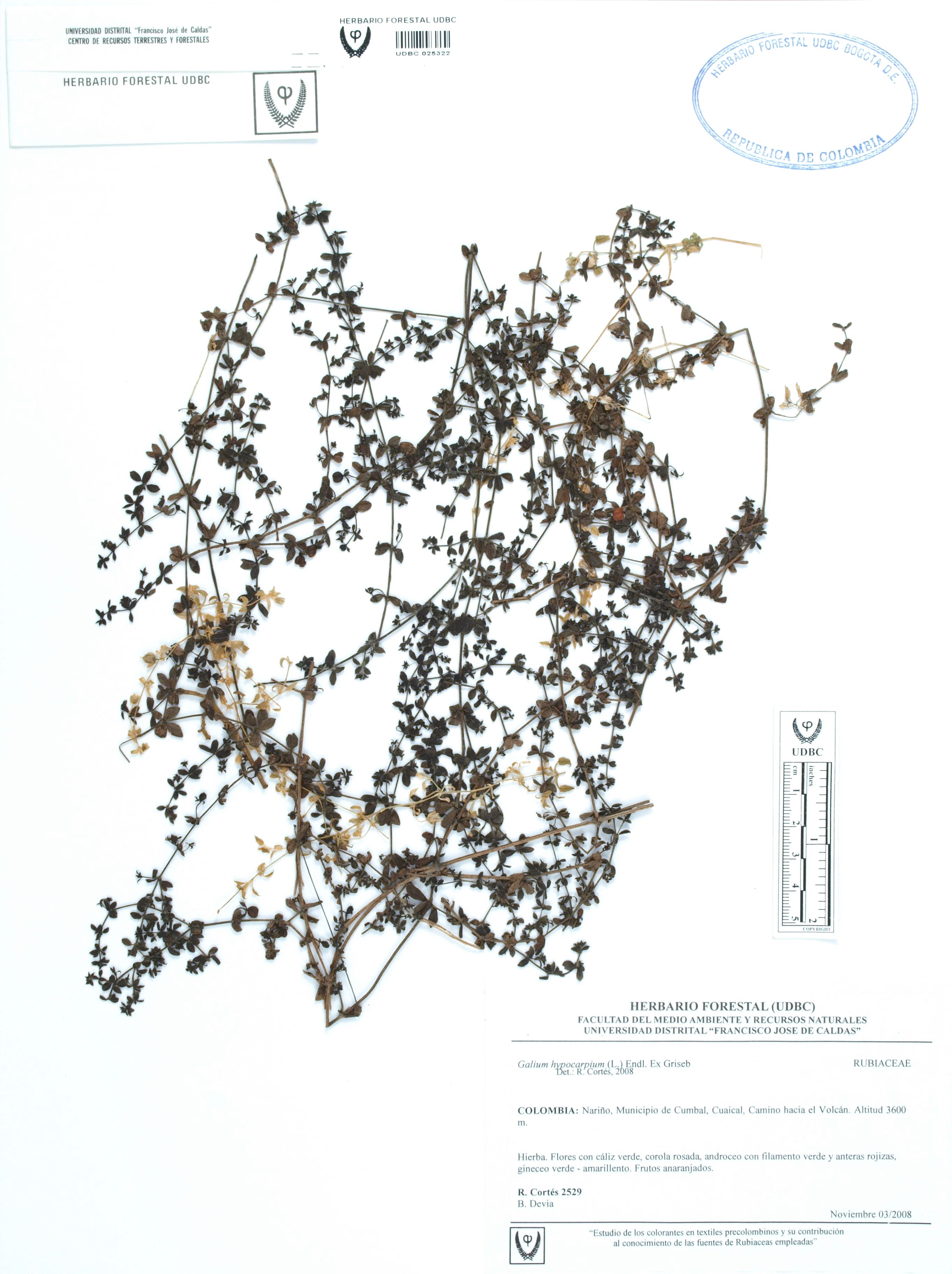 Fotografía del ejemplar Cortés-B., R. 2529, determinado como Galium hypocarpium en el año 2008