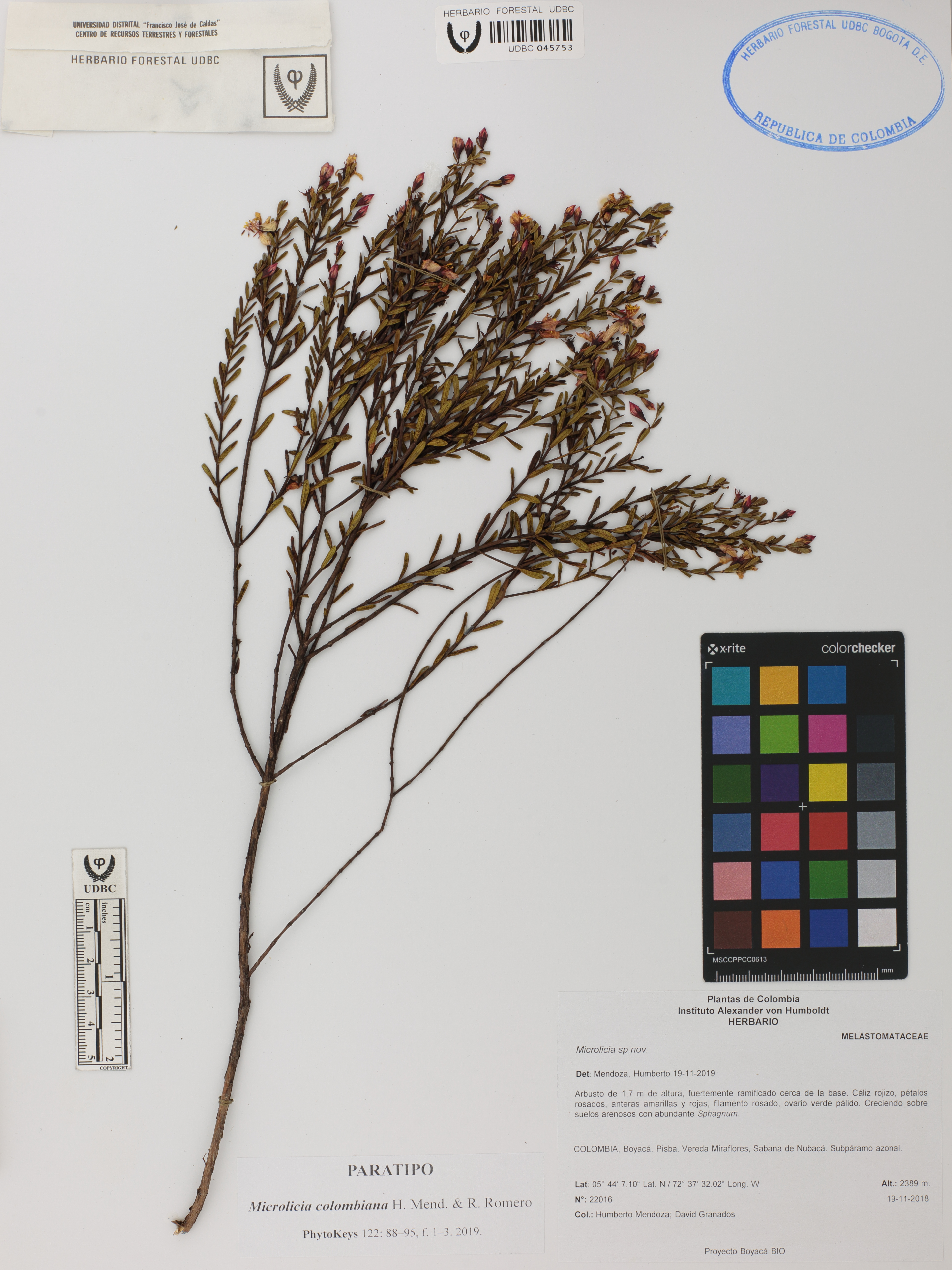 Fotografía del ejemplar Mendoza, H. 22016, Paratipo de Microlicia colombiana