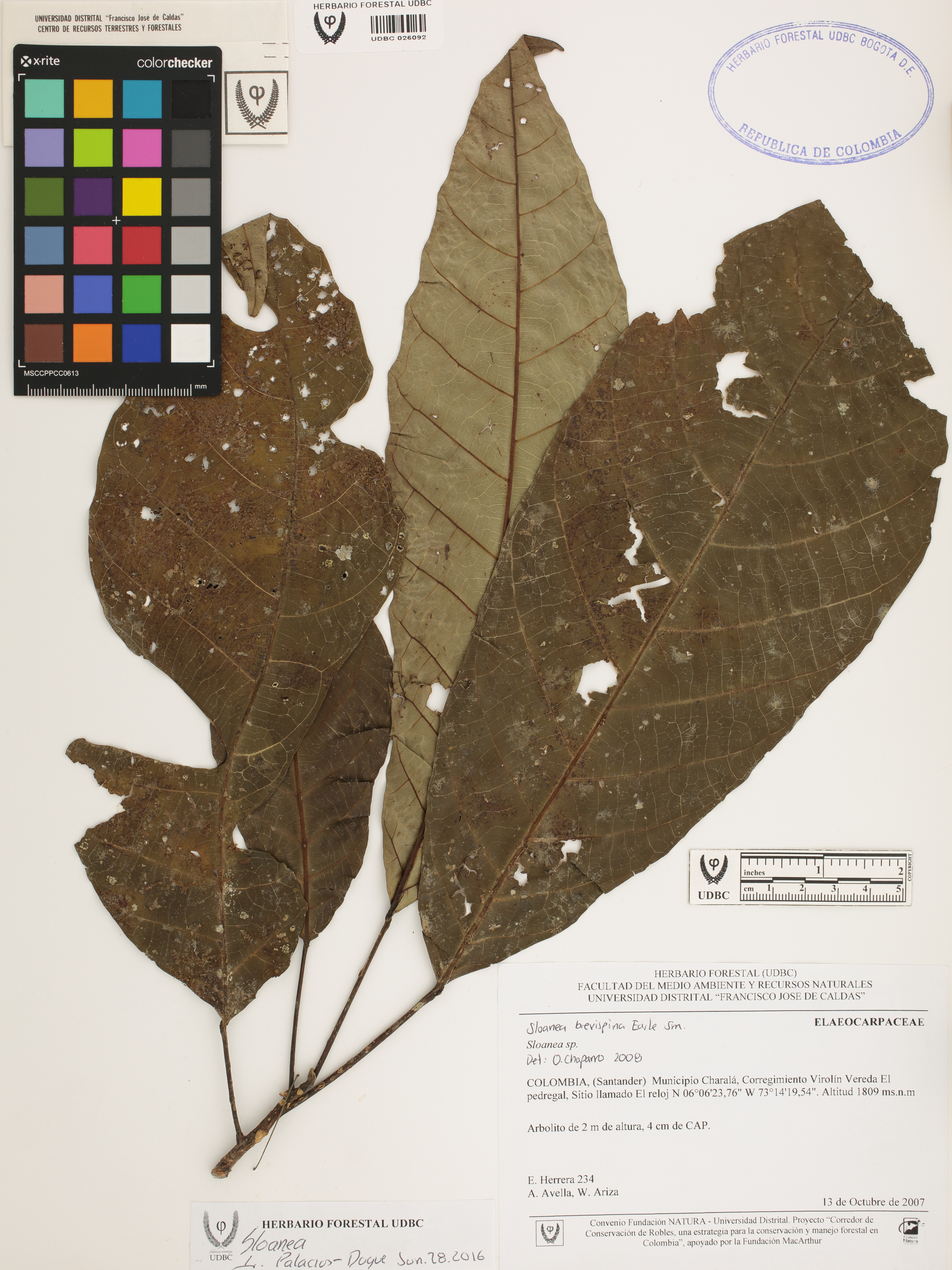 Fotografía del ejemplar Herrera, E. 234, determinado como Sloanea sp. en el año 2016