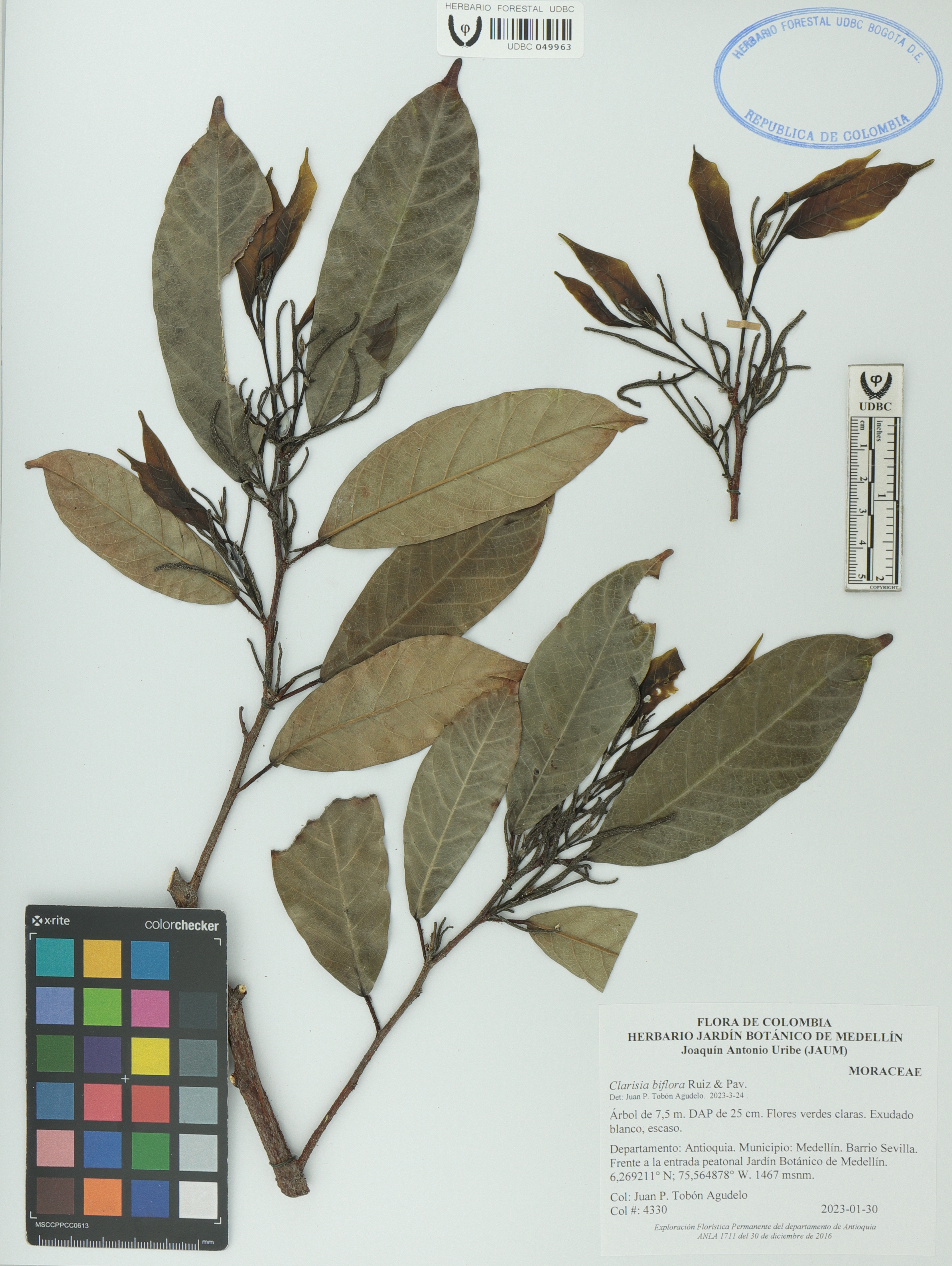 | dc.description | Fotografía del ejemplar Tobón-A., J. 4330, determinado como Clarisia biflora en el año 2023 | |