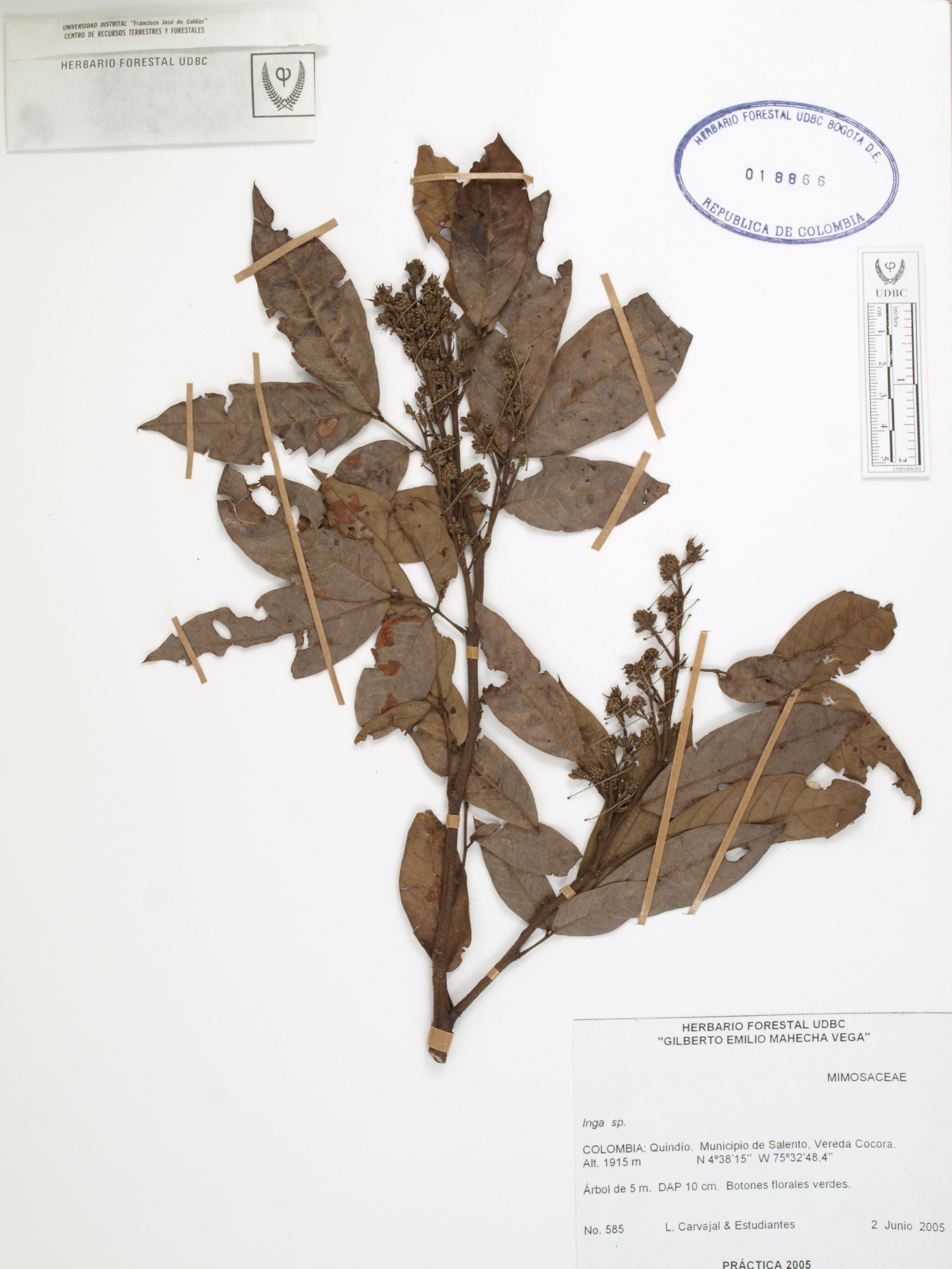 Fotografía del ejemplar Carvajal, L. 585, determinado como Inga sp.