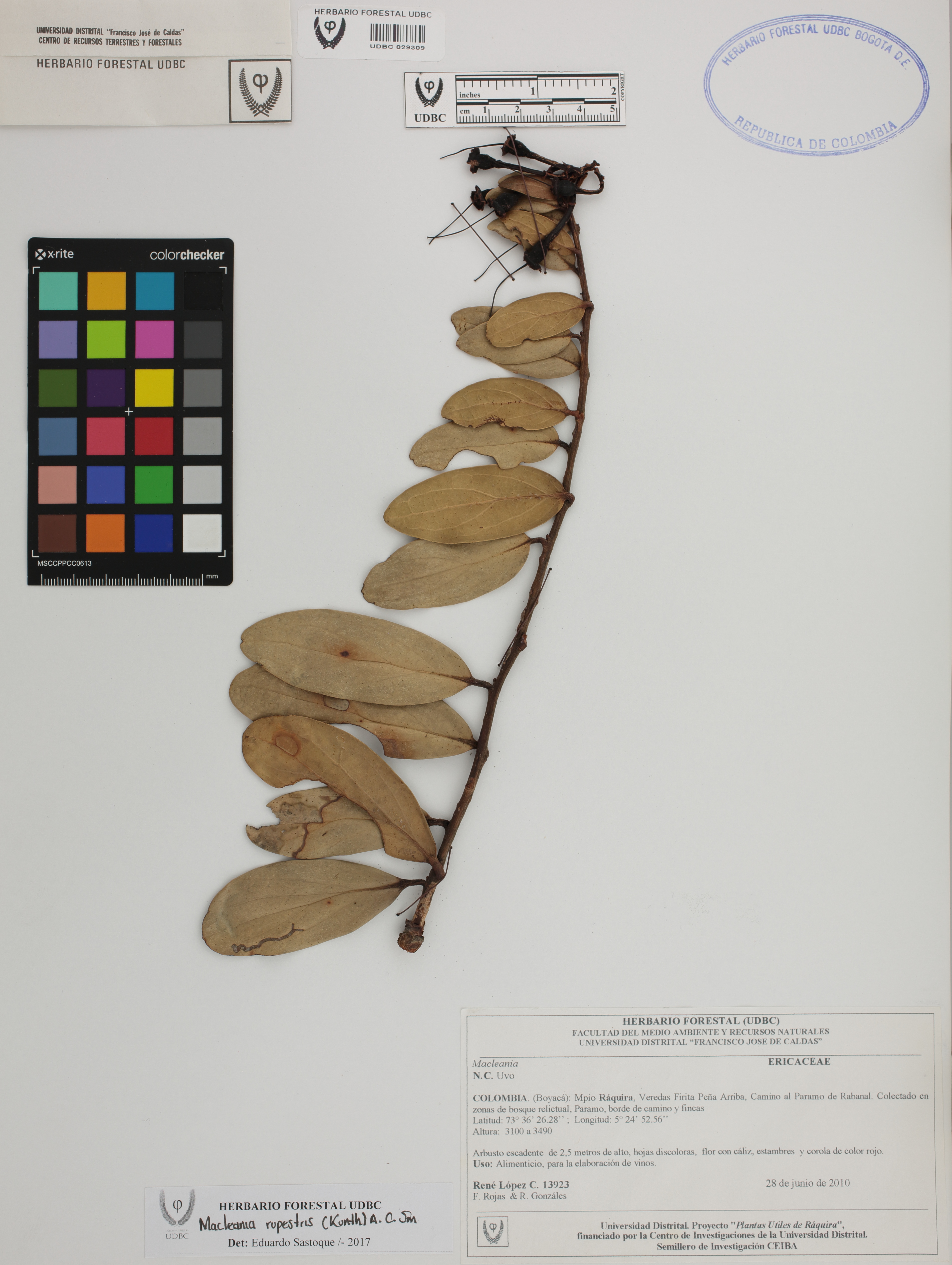 Fotografía del ejemplar López, R. 13923, determinado como Macleania rupestris en el año 2017