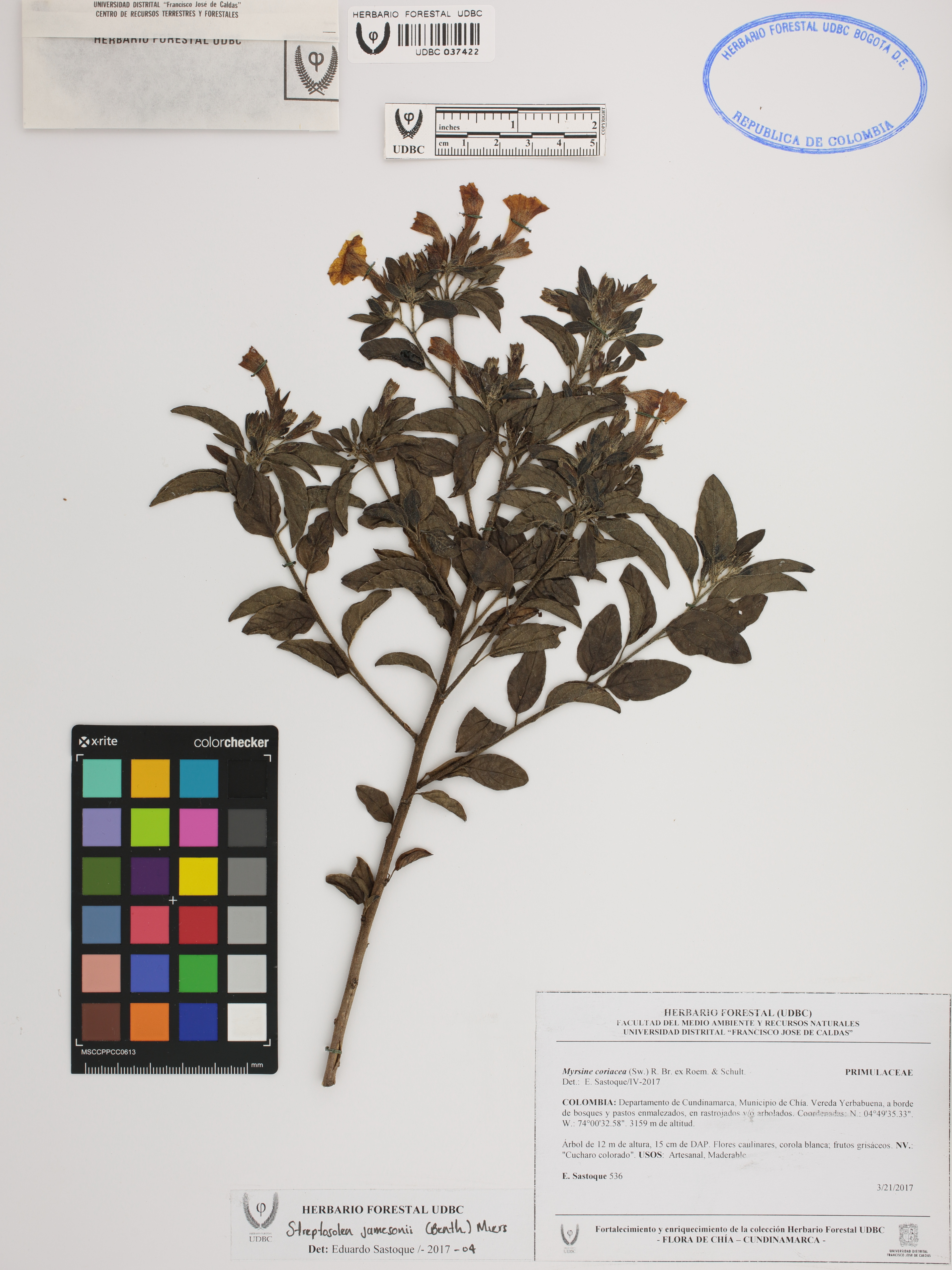 Fotografía del ejemplar Sastoque, E. 536, determinado como Streptosolen jamesonii en el año 2017