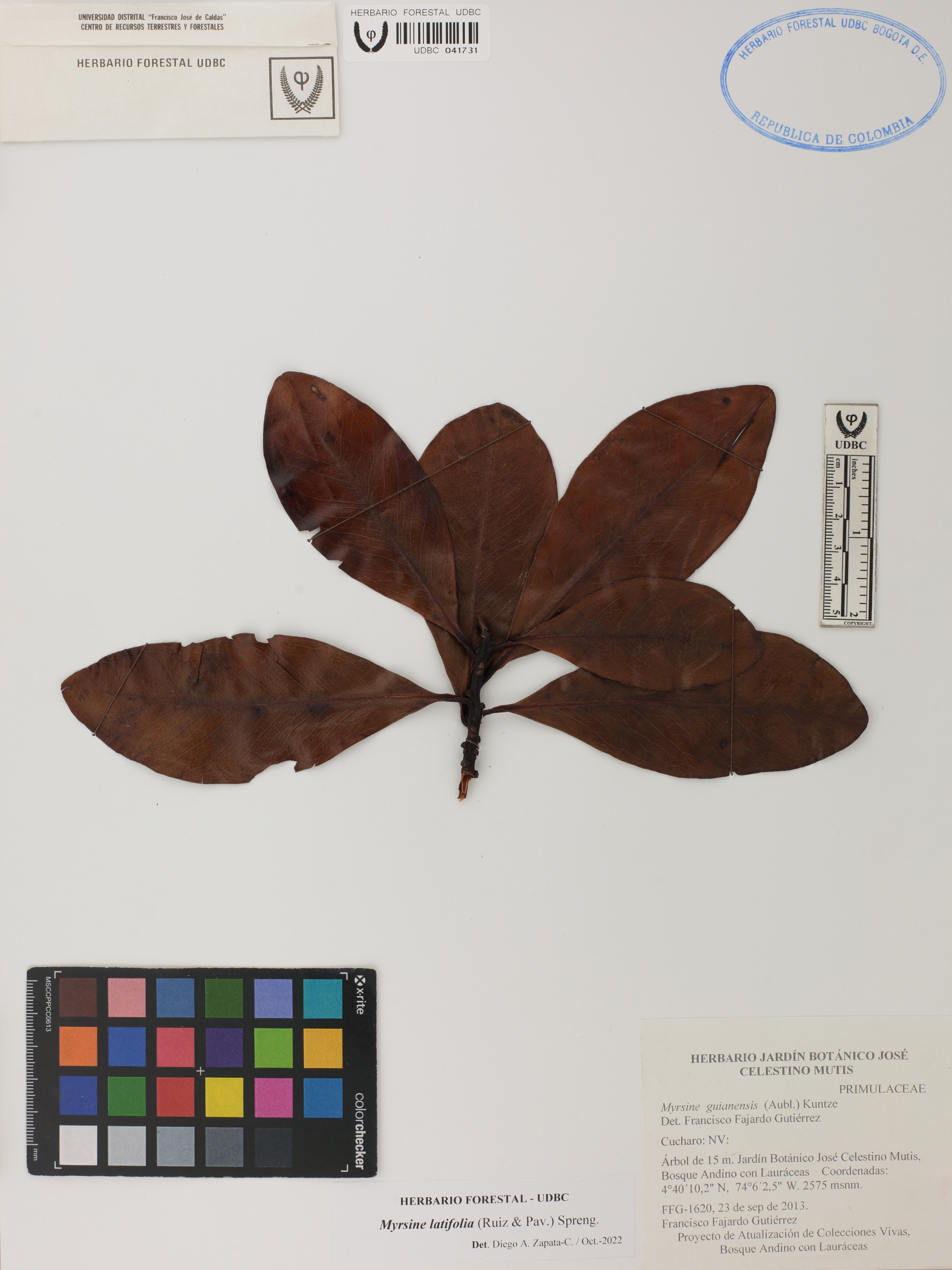 Fotografía del ejemplar Fajardo, F. 1620, determinado como Myrsine latifolia en el año 2022