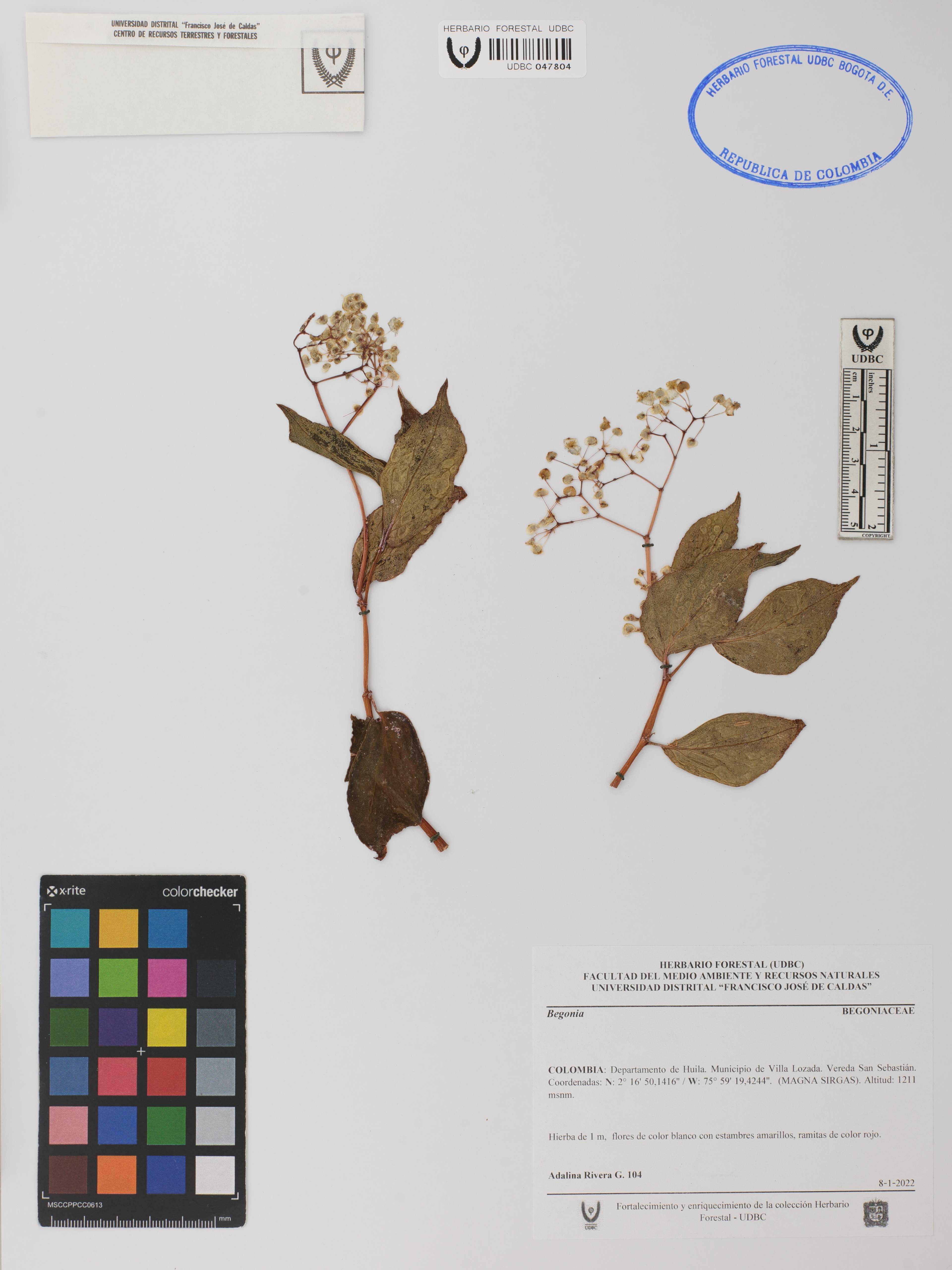 Fotografía del ejemplar Rivera-G., A. 104, determinado como Begonia sp.